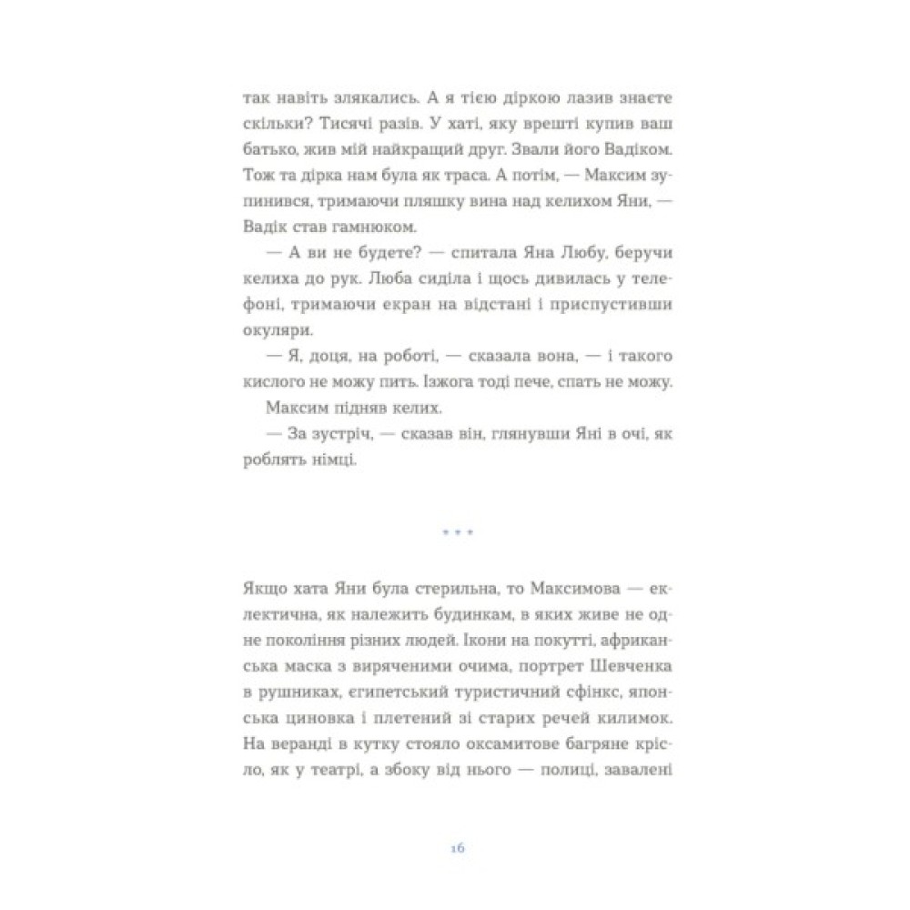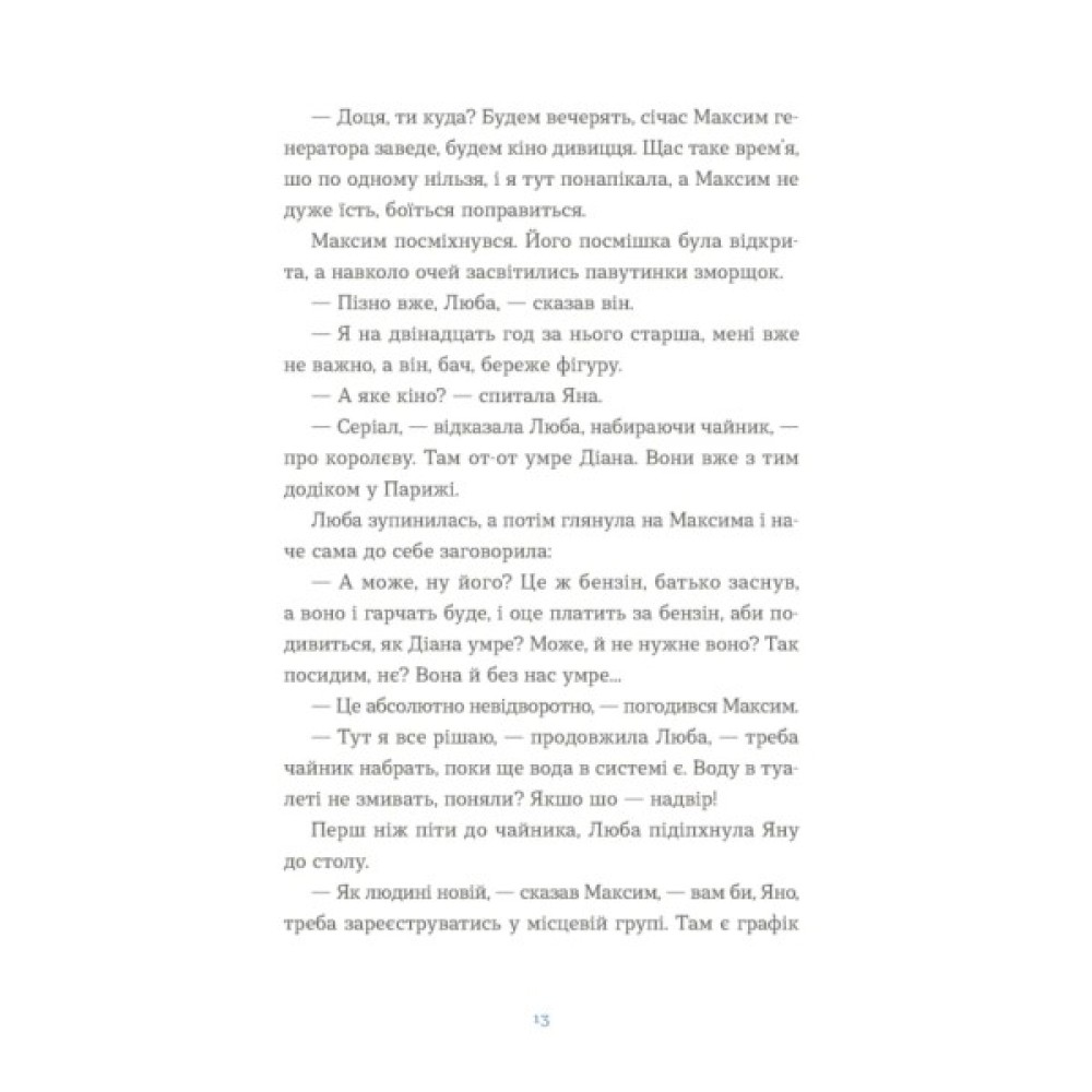 Навіть коли здається, що час застигає, а земля зупиняється, приходить зима. Сіріє небо, шелестять висохлі трави, мерехтять гірлянди під гул генераторів — більше для світла, ніж для свята. Люди живуть війну як уміють, роблять свій вибір, як можуть: відпустити чи хай там що, аби свої були цілі? Чи стане серця для любові у темну добу? У засніжених очеретах Дніпра, на спустілих вулицях, що стікаються з пагорбів до траси, у темних хатах, де поріг обсипають маком від нечисті, а душі померлих приходять за Різдвяні столи, Яна переступає через дірку в паркані і вплутується у дилеми, де немає ані правильних запитань, ані відповідей, але є Максим, непевність, любов і вівці.