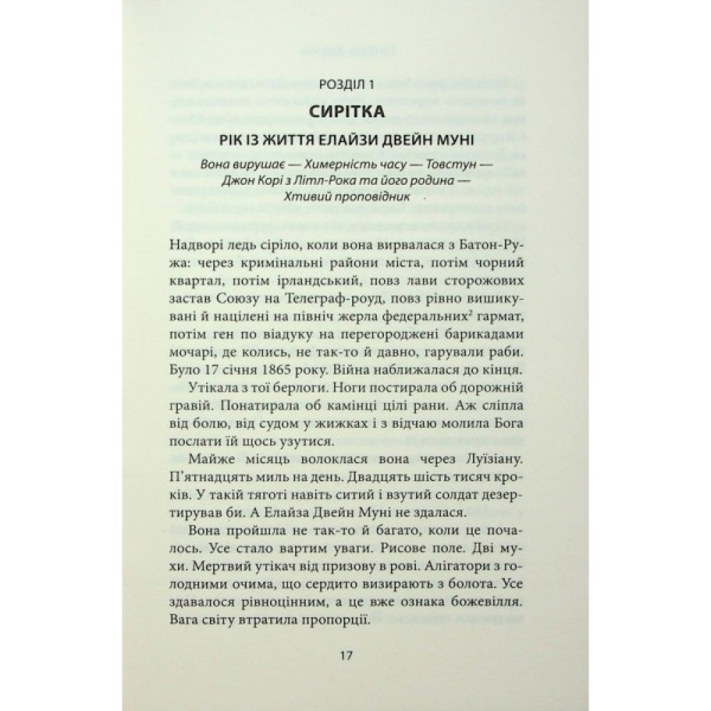 Ця подорож позначиться на долях багатьох: поетеси, яка працювала медсестрою, повстанця-партизана, колишньої рабині, закоханого картографа і відчайдушного революціонера, який командував бригадою ірландських іммігрантів в армії Союзу, а відтак став виконувачем обов’язків губернатора. Це історія про війну і прощення, про чужинців на чужині, про кохання, яке піддається серйозним випробуванням.