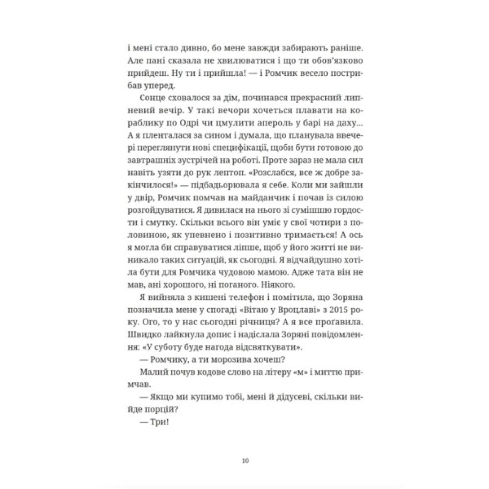 Це тепла історія, сповнена гумору, емоцій, чуттєвих сцен, айтішних та мамських жартів. Це роман про здорові стосунки, відповідальність та пошук коріння, про життя, в якому не завжди бувають біла сукня й обручка, але завжди є місце для щастя.