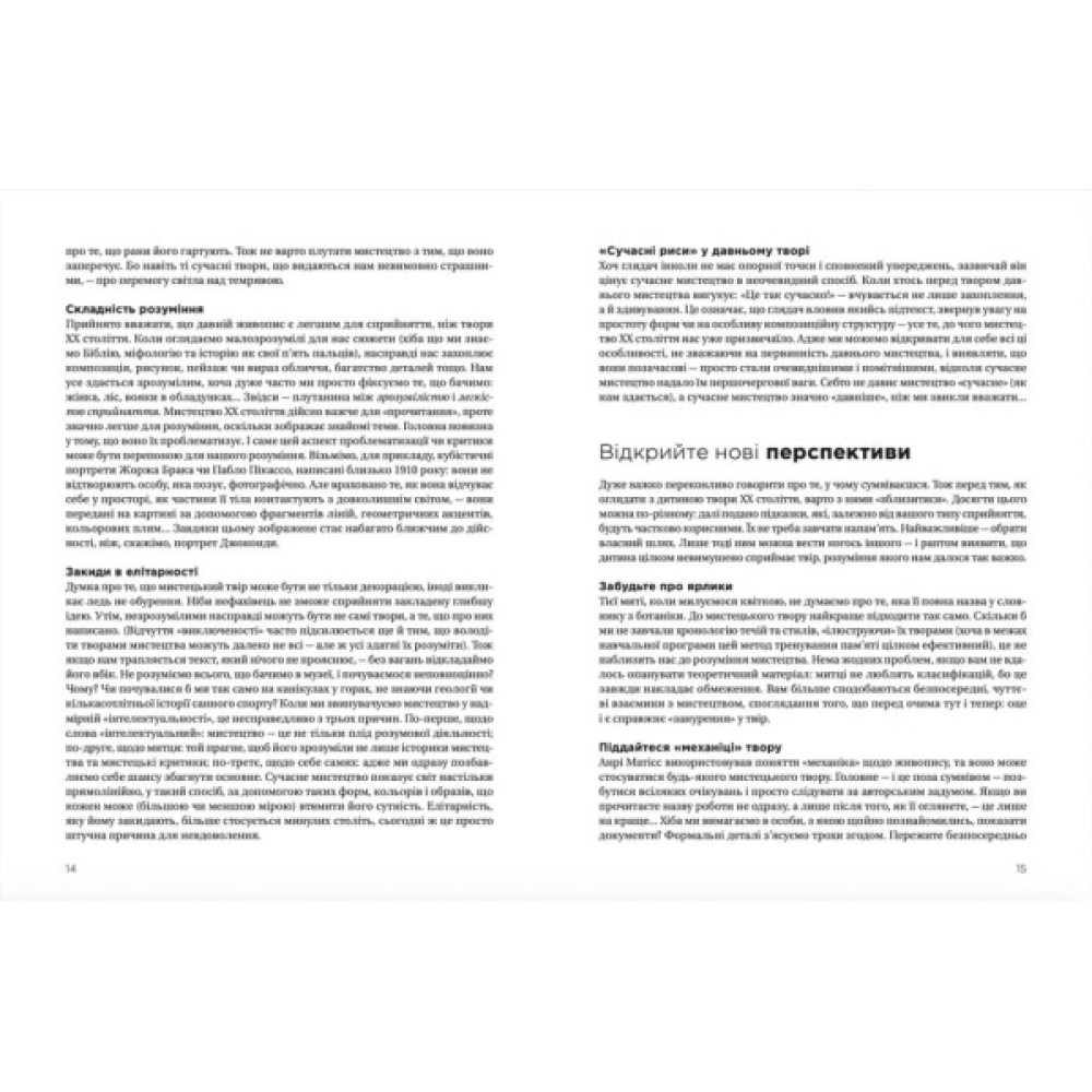 Книга зацікавить батьків та педагогів, які творчо підходять до розвитку дітей, а також — без жодних сумнівів! — усіх тих, хто хоче пізнати й оцінити мистецтво ХХ століття так щиро і відкрито, як діти.