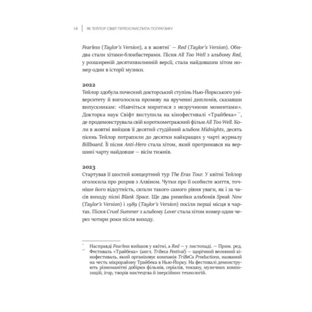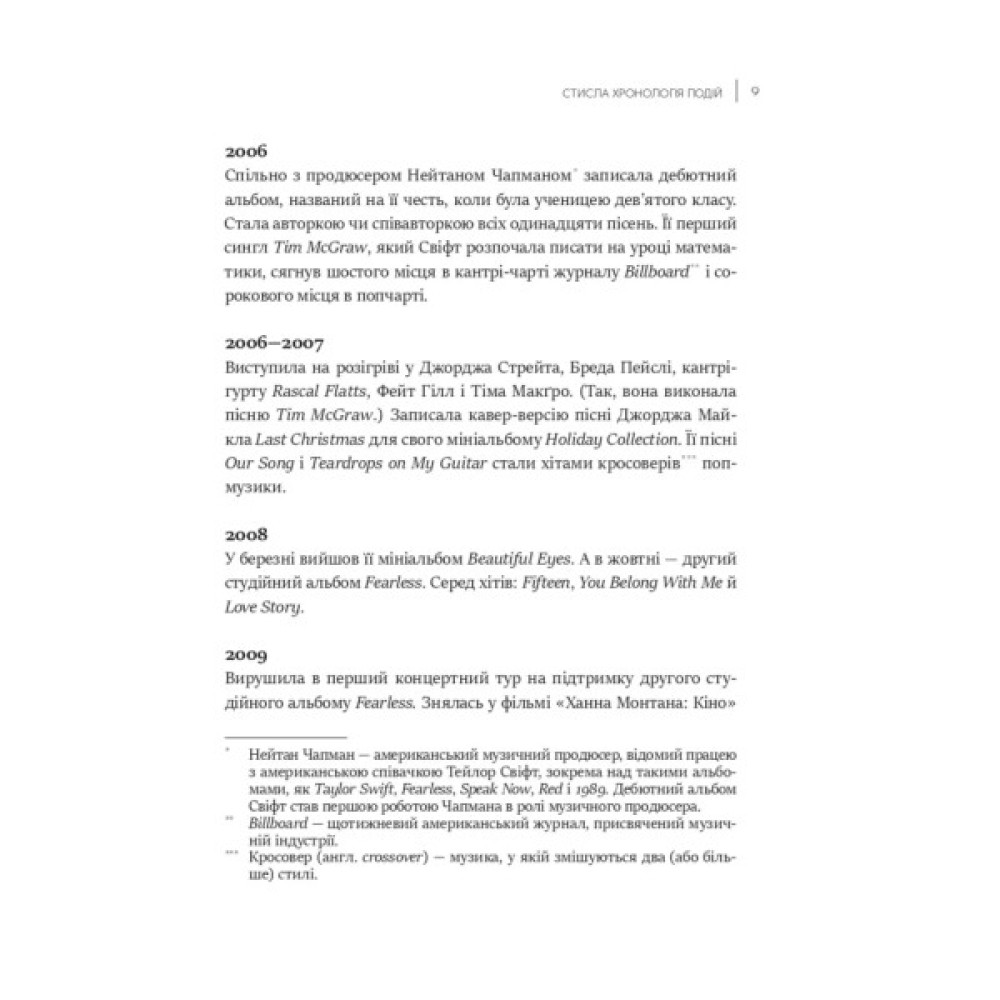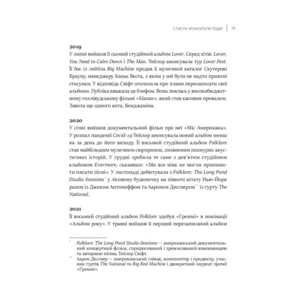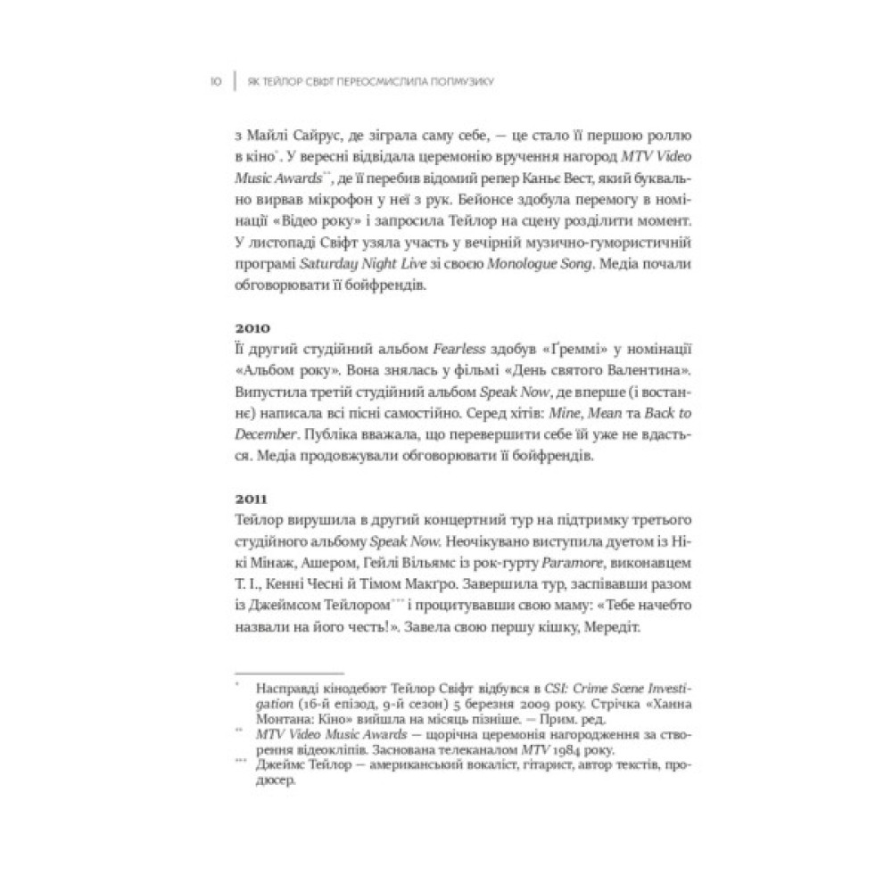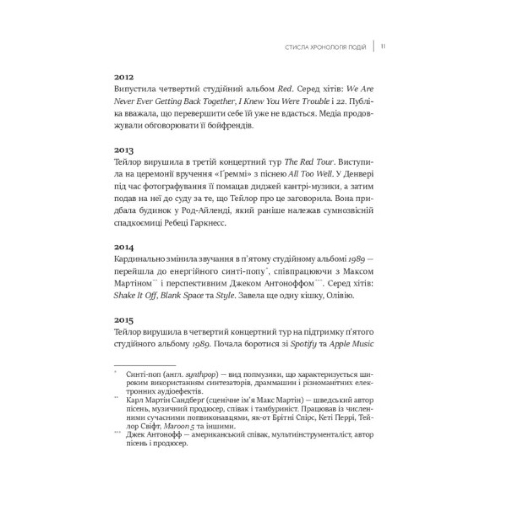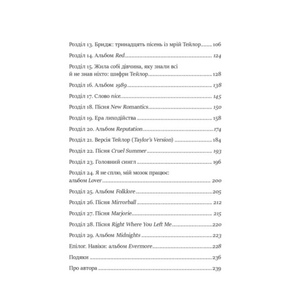 Тому нонфікшн від досвідченого музичного критика, що цінує мистецтво співачки, стане мастрідом для відданої фанатської спільноти, а водночас і тих, хто тільки починає знайомство з треками Свіфт. Стрімкі й насичені розділи пронизані особливим ентузіазмом до творчості виконавиці та поглиблені тлумаченням сенсів пісень, роблять текст переконливим запрошенням у світ Тейлор Свіфт.