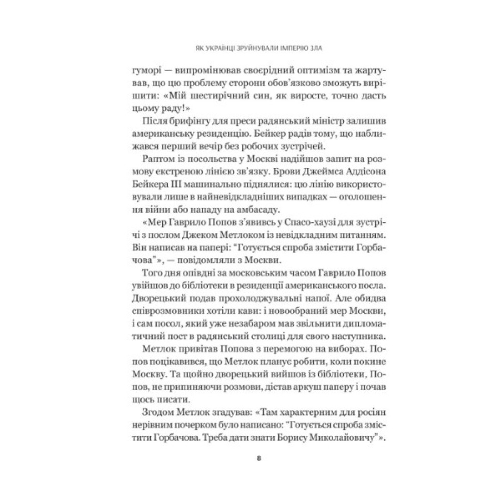 Чи варто читати цю книжку? Ні, не варто, а потрібно, конче потрібно, щоб зрозуміти один з переломних моментів у світовій історії та шлях України до себе.