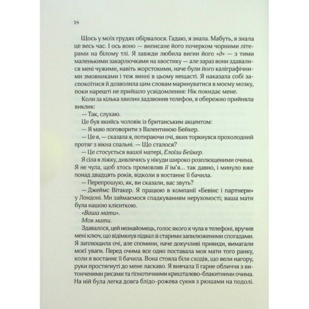 І оцей поділ розділів, коли в одному розповідається про Валентину, а в іншому - про її матір Елоїзу... Таке відчуття, наче ти читаєш і переживаєш у романі одразу дві історії, які так чи інакше переплітаються в один суцільний сюжет»,