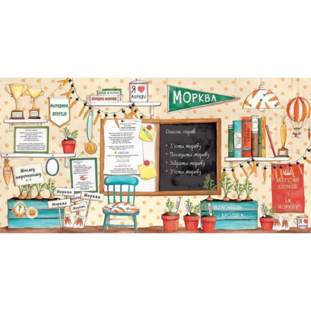 «Забагато моркви» - ця книжка феноменальний бестселер про Кролика, який занадто любить моркву. Ця чарівна і з любов'ю ілюстрована дитяча книга автора Кеті Хадсон показує, як дружба допомагає нам долати важкі моменти життя, навіть якщо ситуація стає трохи нерівною. Дане видання буде ідеальним подарунок малюкові до наближення весни, на Великдень, та й у будь-який інший час року, адже сама історія кумедна і повчальна, малюнки барвисті, а звірятка неймовірно милі.
