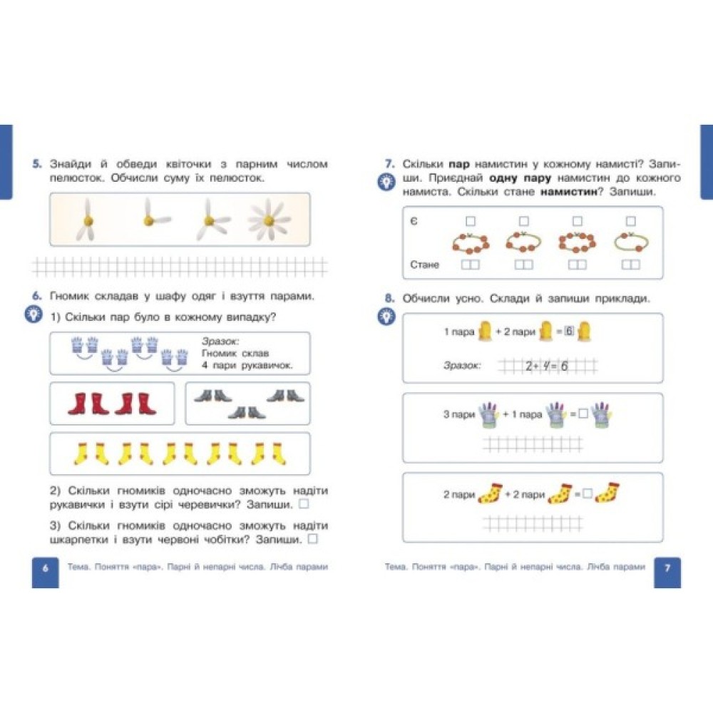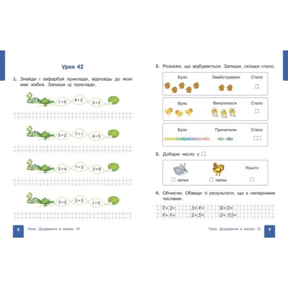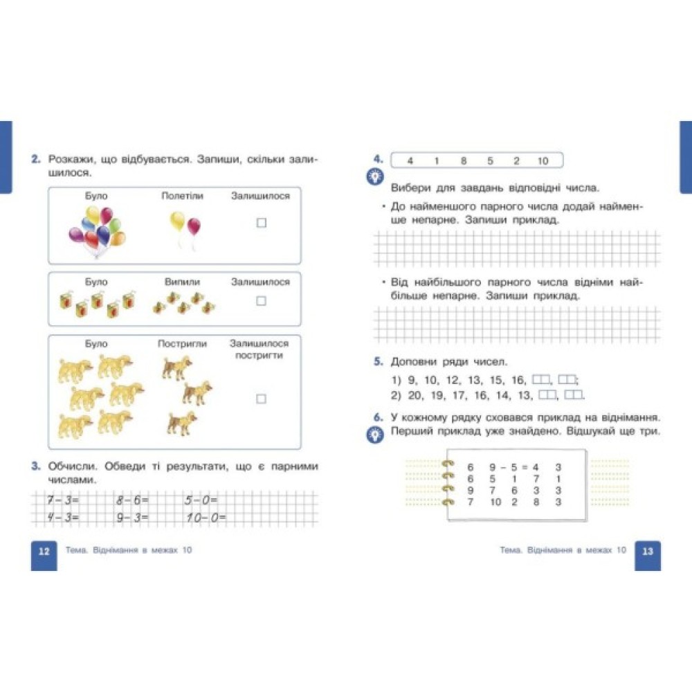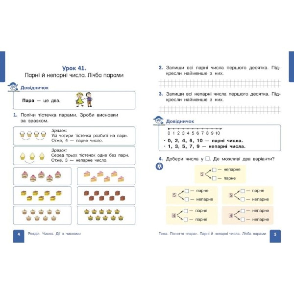 Навчальний посібник «Математика» для 1 класу ЗЗСО створено відповідно до Типової освітньої програми, розробленої під керівництвом Р. Б. Шияна. Це сучасне навчальне видання, яке органічно поєднує функції підручника і робочого зошита. Видання щедро проілюстроване, наповнене веселими ігровими сюжетами, що підвищує мотивацію учнів/учениць до навчання.