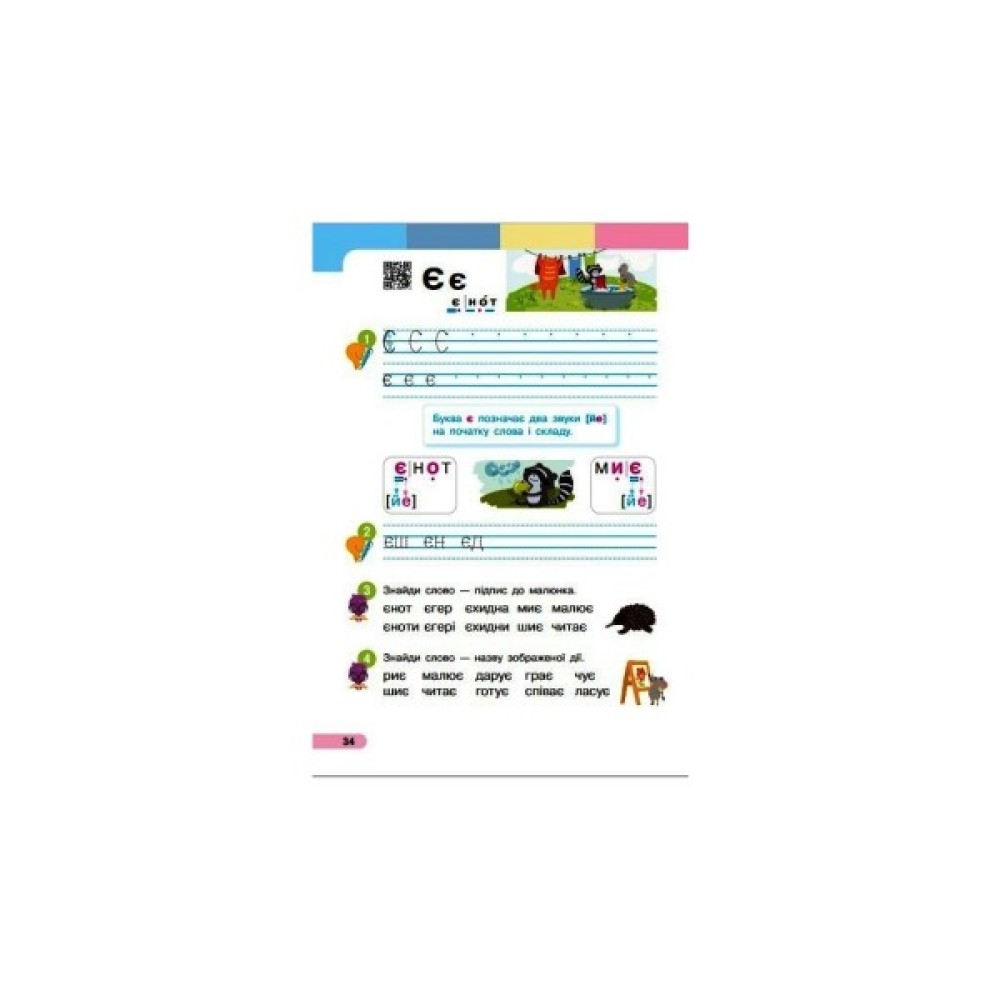 Посібник містить завдання добукварного періоду (позначені кнопкою синього кольору); завдання букварного періоду (позначені кнопкою жовтого кольору); завдання з розвитку критичного, логічного, творчого мислення, завдання підвищеної складності (позначені кнопкою червоного кольору).