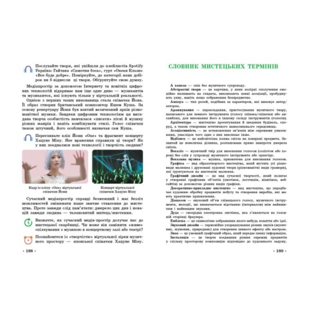 Окрім традиційного викладення навчального матеріалу, запитань та завдань, підручник має інтерактивний супровід на інтернет-платформі, що дозволяє осучаснити викладання інтегрованого курсу "Мистецтво" та урізноманітнити форми роботи з предмета.