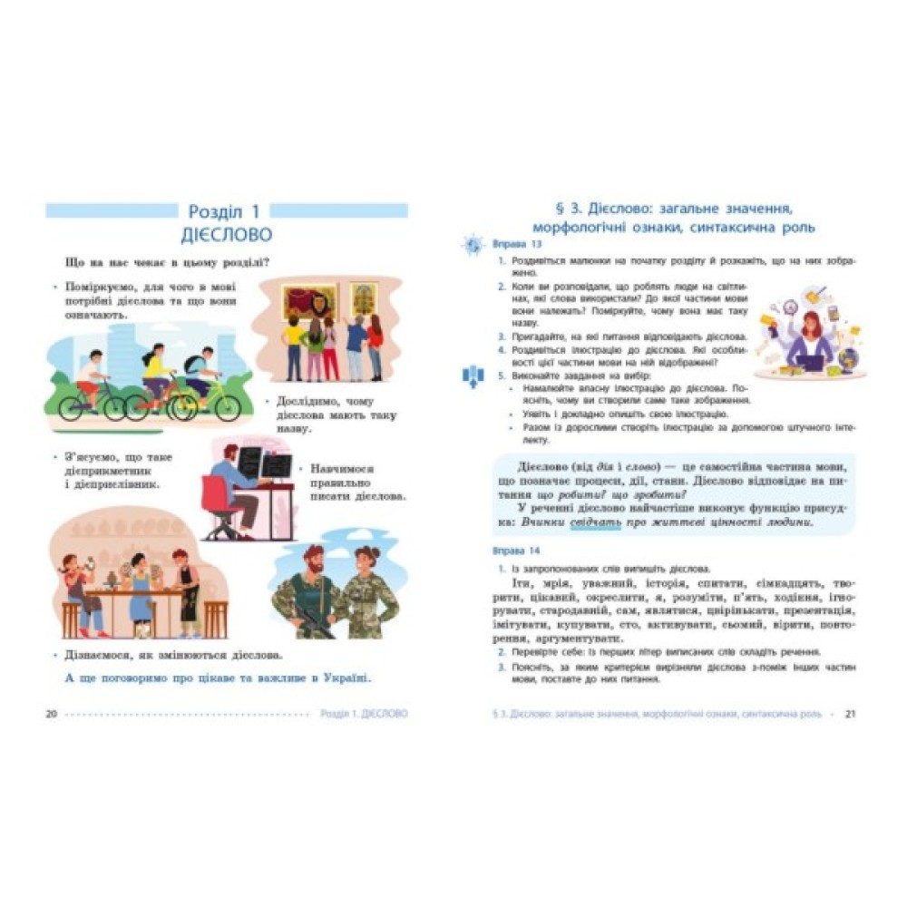 В основі підручника — збалансоване поєднання доступно викладеної нової інформації про мову із активним залученням уже здобутих знань і самостійних міркувань учнів та учениць.