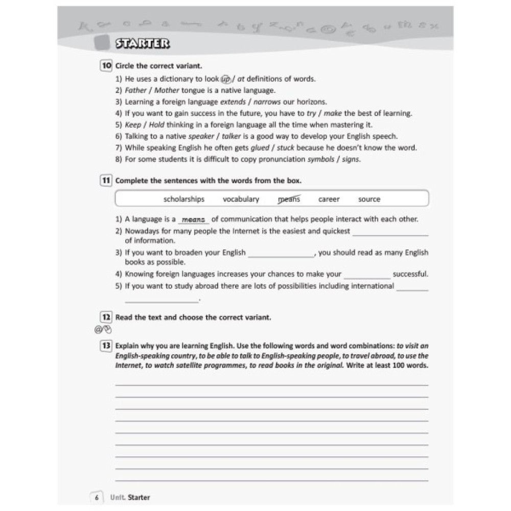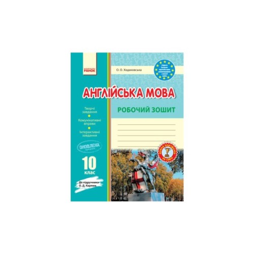Робочий зошит, укладений до підручника О. Д. Карпюк «Англійська мова. 10 клас», відповідає чинній програмі з іноземних мов для 10 класу закладів загальної середньої освіти. Різноманітні завдання ґрунтуються на комунікативному підході й призначені для більш детального опрацювання учнями навчального матеріалу на уроках і вдома. Виконання інтерактивних вправ, посилання на які пропонуються в зошиті*, сприятиме підвищенню інтересу школярів до вивчення англійської мови. У мовному портфоліо для самоконтролю навчальних досягнень втілені новітні світові тенденції мовної освіти.