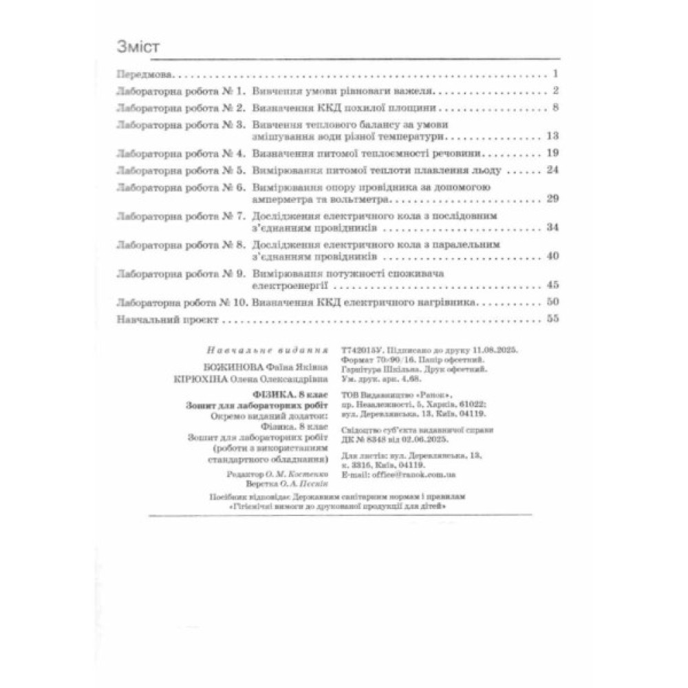 Призначено для учнів та учениць 8 класу закладів загальної середньої освіти, вчителів і вчительок фізики.