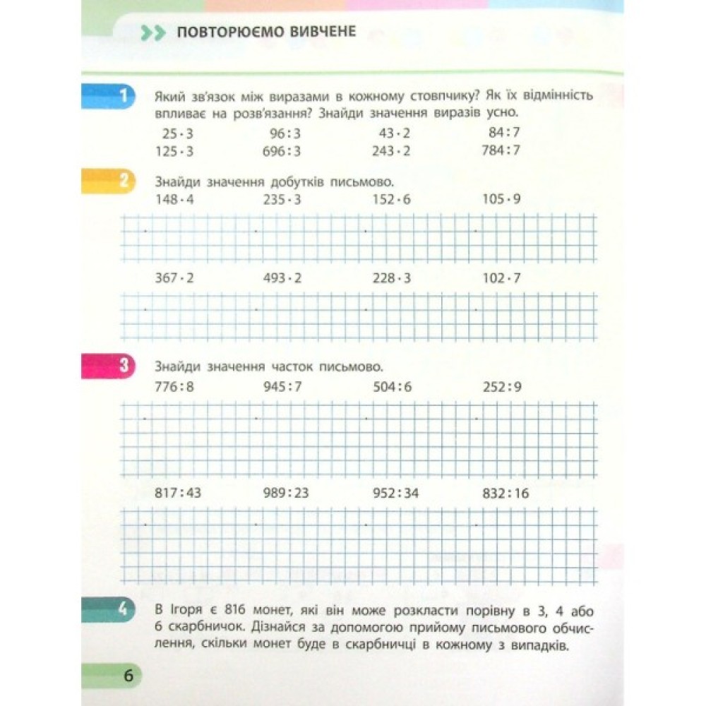 Робочий зошит НУШ Математика. 4 клас. У 4 частинах. Частина 2 - С.О. Скворцова, О.В. Онопрієнко Ранок (9786170973009)