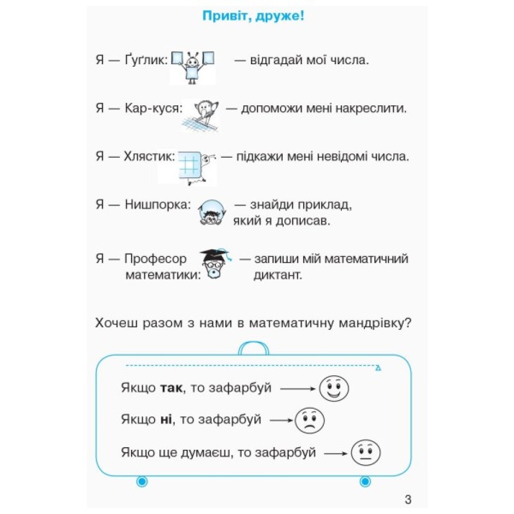 Робочий зошит складений відповідно до нової програми з математики, поурочно узгоджений з підручником «Математика» для першого класу (авт. О. М. Гісь, І. В. Філяк).