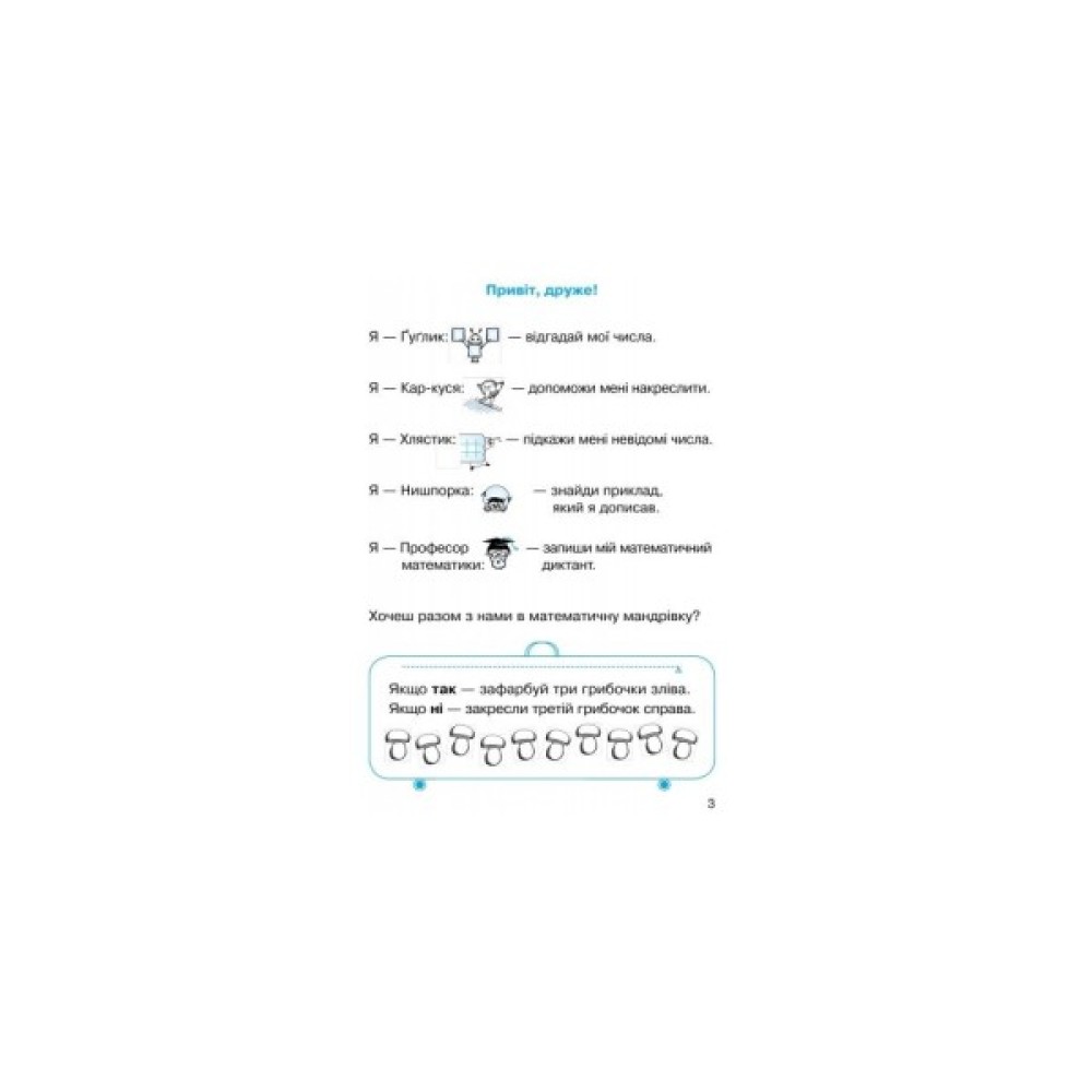 Робочий зошит складений відповідно до нової програми з математики, поурочно узгоджений з підручником «Математика» для першого класу (авт. О. М. Гісь, І. В. Філяк).