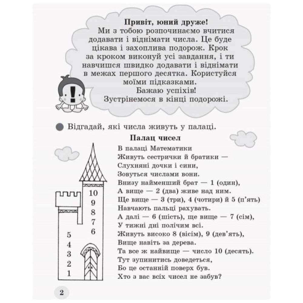 У посібнику подано систему вправ для засвоєння таблиць додавання і віднімання в межах 10.