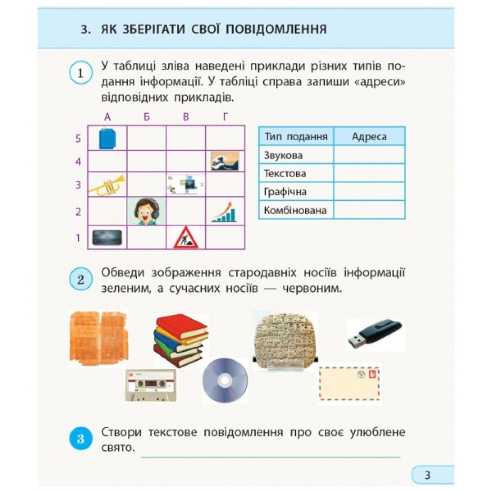 Пропоновані завдання спрямовані на формування в учнів початкових уявлень про базові поняття інформатики, закріплення вивченого матеріалу, розвиток алгоритмічного й логічного мислення та творчих здібностей.