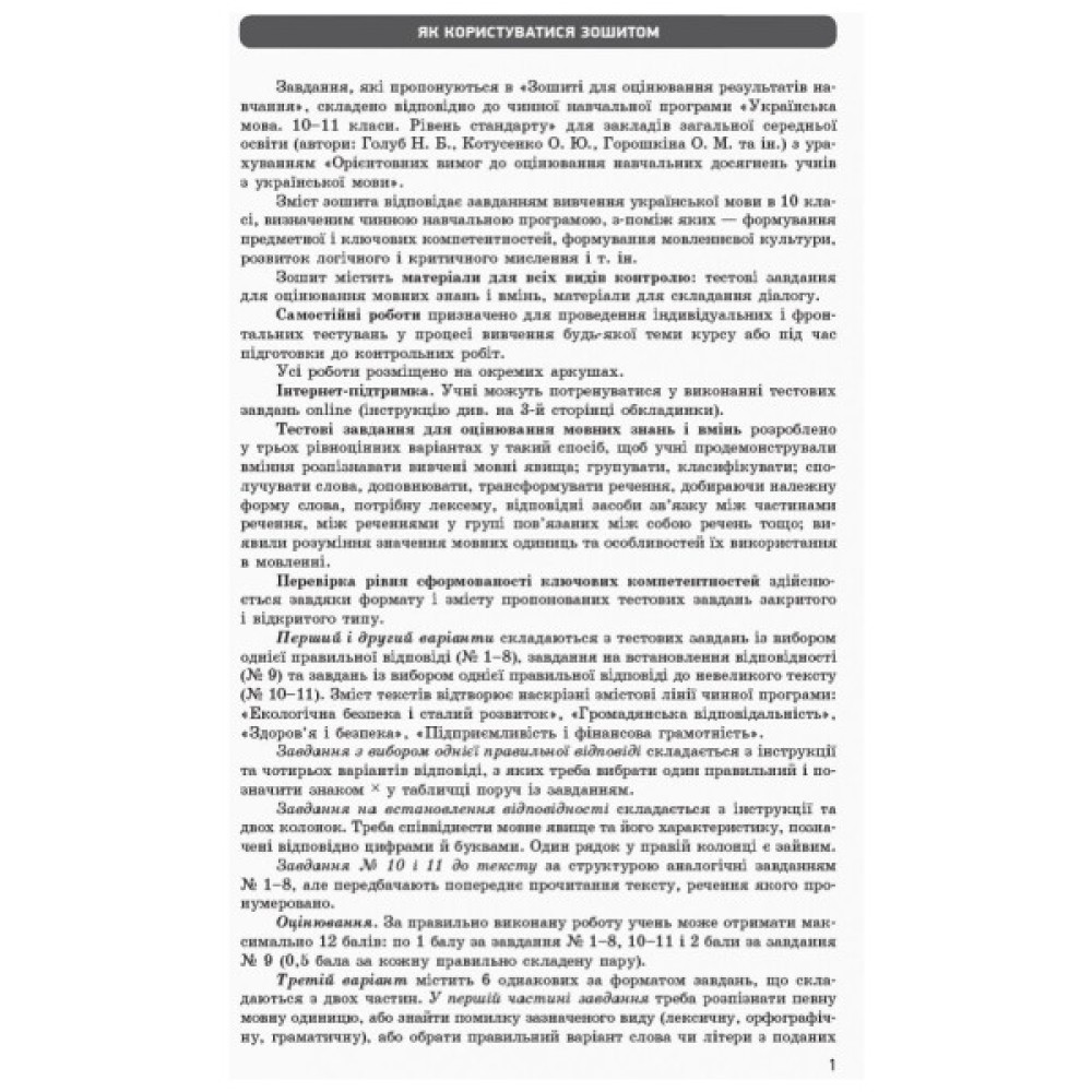 Українська мова. 10 клас. Для оцінювання результат