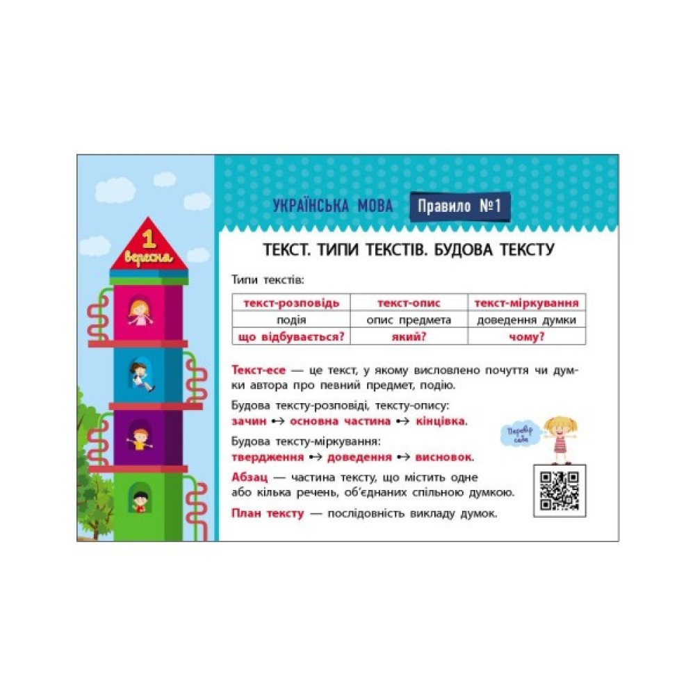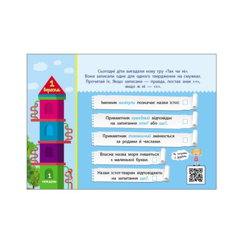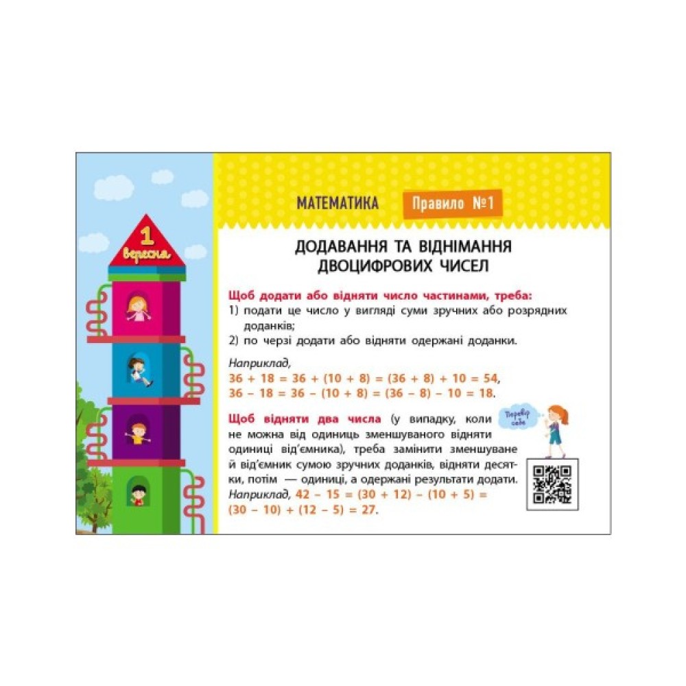 До кожного правила є коротенькі тести, які відкриваються за QR-кодом й допоможуть дитині перевірити знання. Крім цього, в зошиті є чек-лист, який нагадає що потрібно зробити перед 1 вересня.