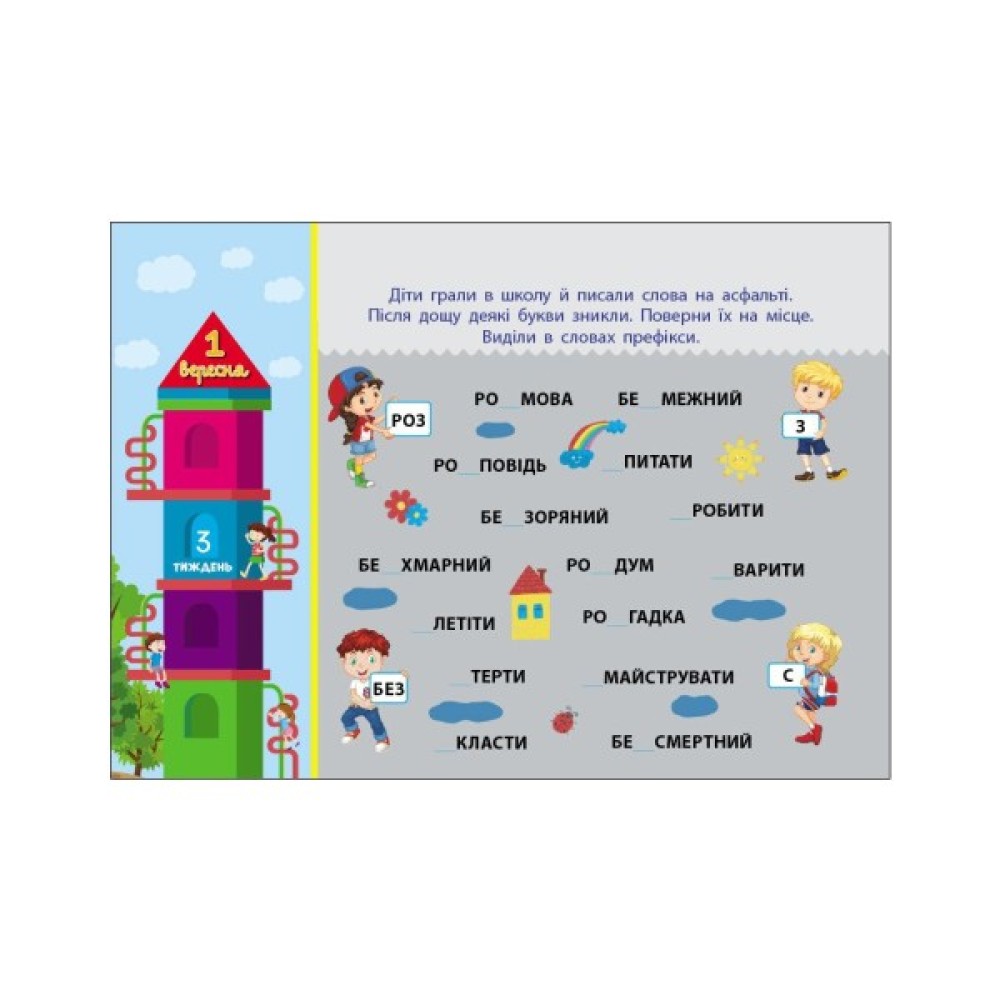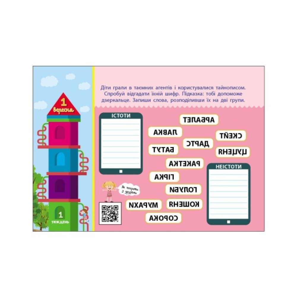 Настільний зошит-календар допоможе пригадати важливий матеріал та впевнено розпочати навчальний рік. Це своєрідний адвент перед школою, який розрахований на 4 тижні та складається із двох частин: ігрових завдань за навчальною програмою та довідничка із правилами, який буде поруч під час виконання домашніх завдань.