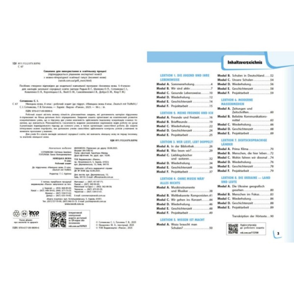 Призначено для учнів 8-х класів, які вивчають німецьку мову як першу іноземну, та вчителів німецької мови.