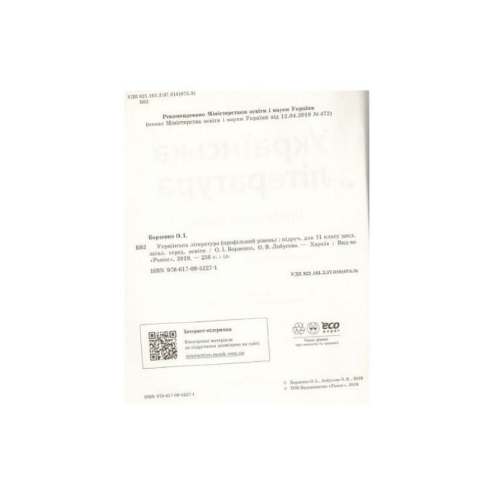 Підручник Українська література. Профільний рівень. Для 11 класу - О.І. Борзенко, О.В. Лобусова Ранок (9786170952271)