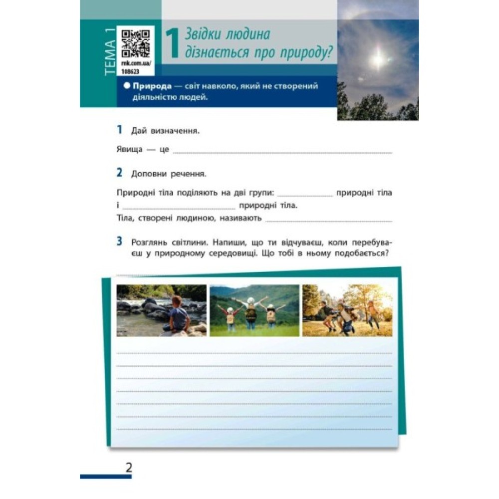 Робочий зошит укладено відповідно до чинної модельної навчальної програми Т. Коршевнюк «Пізнаємо природу. 5–6 класи (інтегрований курс)» для закладів загальної середньої освіти. Він містить найнеобхідніші визначення й короткі теоретичні блоки, практичні завдання й проєкти, візуальні елементи навчання й електронні освітні ресурси: інтерактивні завдання, анімації, навчальні відеоролики, мобільні ігри, які розміщені під QR-кодами на початку кожного уроку.
