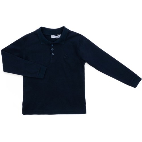 - Стильний класичний темно-синій лонгслів-поло для хлопчика, з довгими рукавами на манжетах, виконаний з приємного на дотик, легкого бавовняного трикотажу-піке.