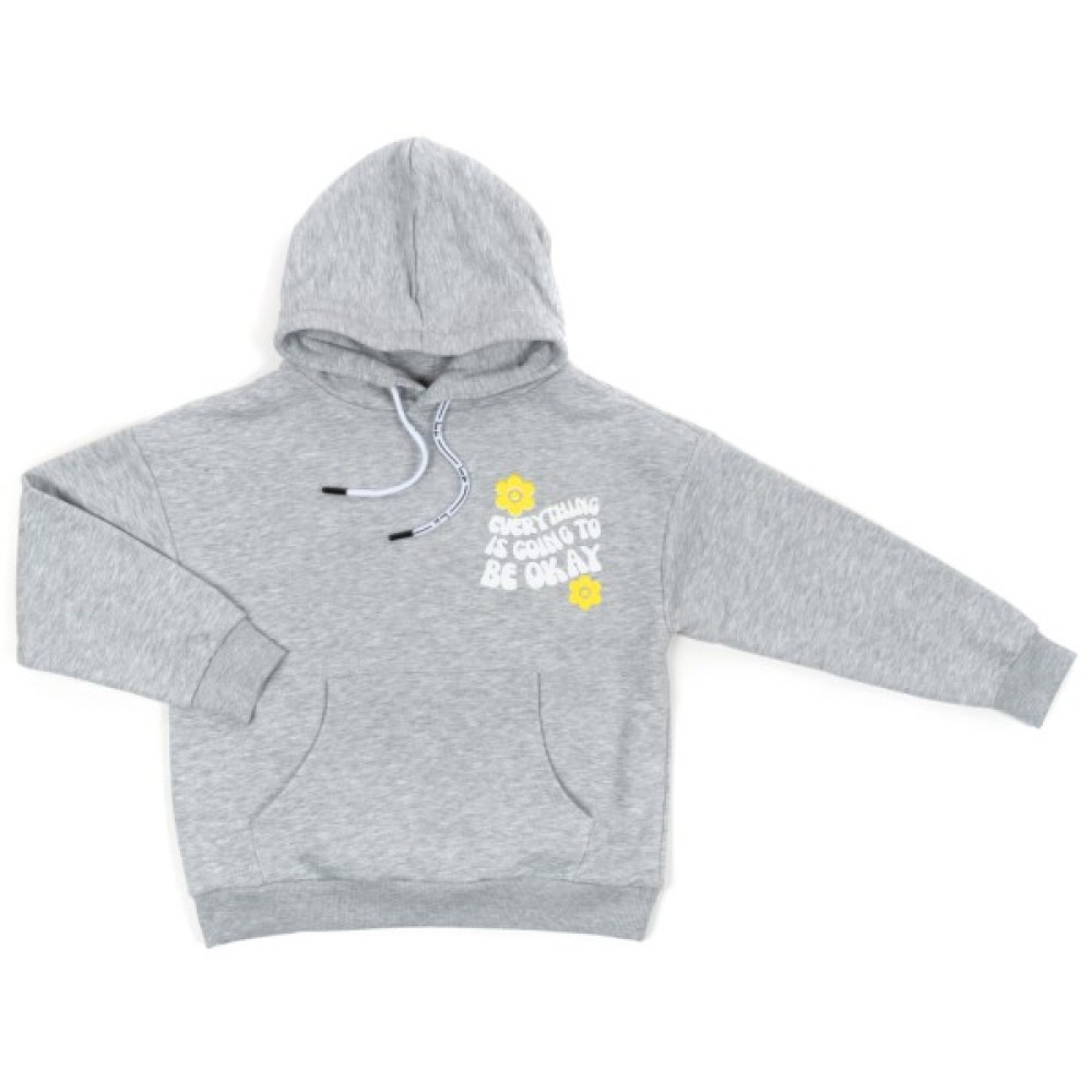 - Дуже зручна та затишна, стильна трикотажна модель сірого кольору, без застібки, прикрашена чудовими 3D принтовими написами та квітками на грудях та на спинці.