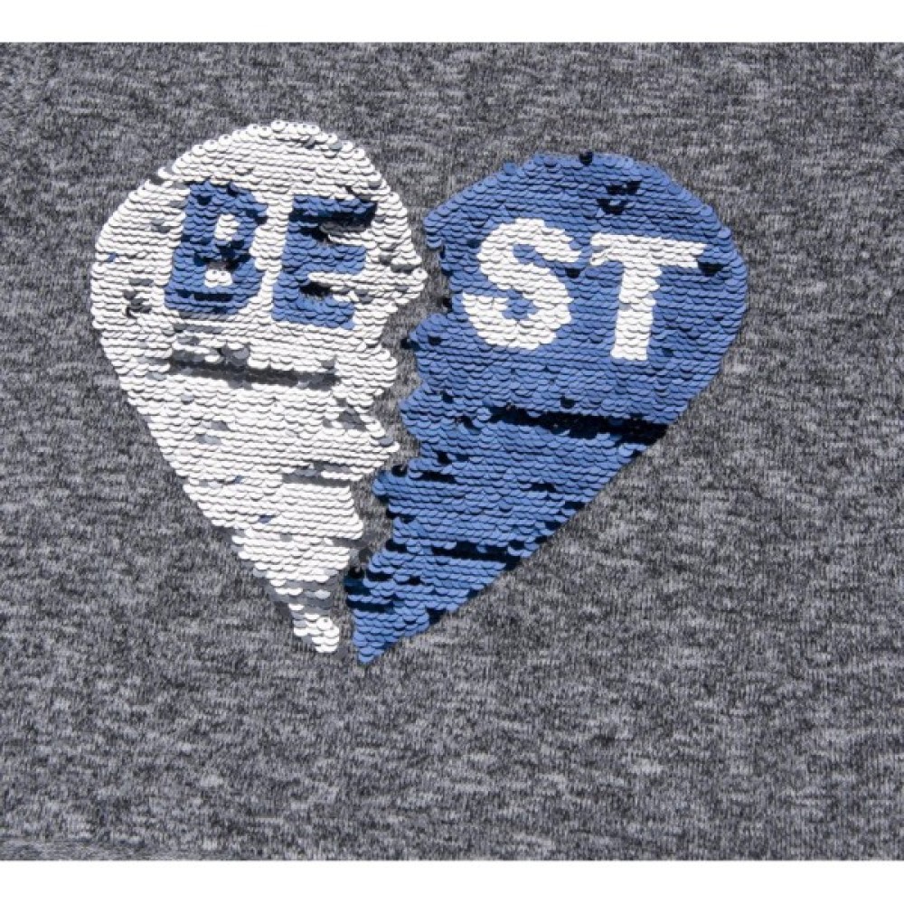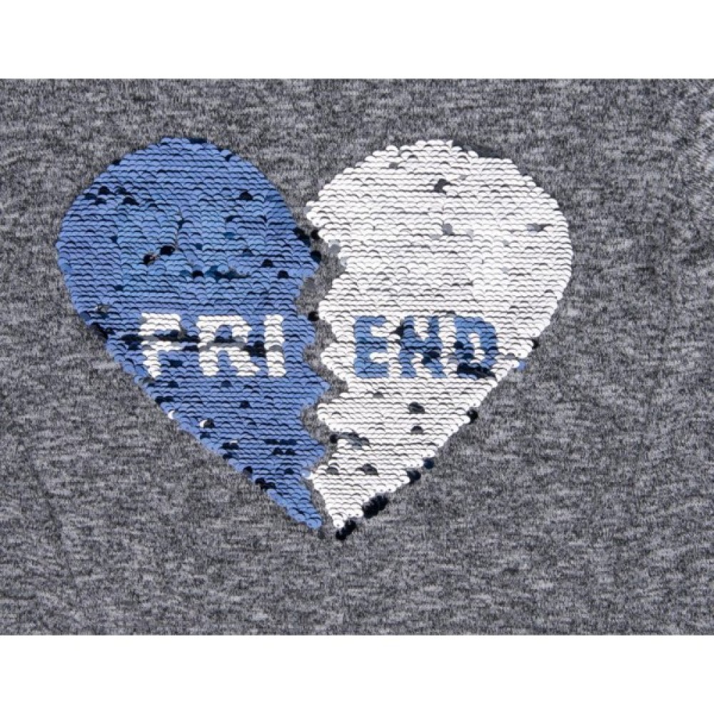 Прикрашений класною деталлю - виконаним з пайєток малюнком у вигляді двох половинок серця з написом у середині. Малюнок змінює колір та напис, якщо провести по ньому рукою.