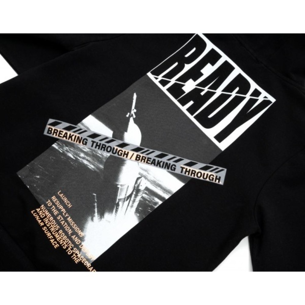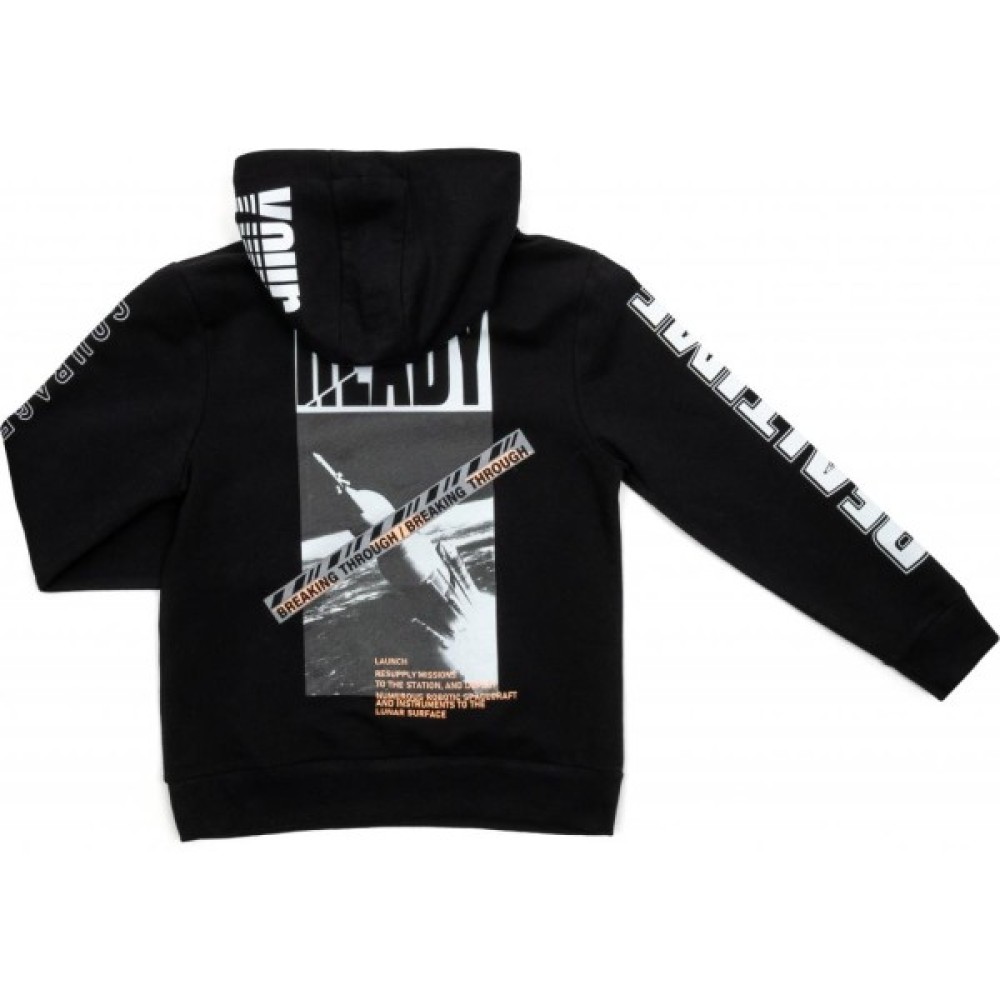 На спині, рукавах і каптурі худі прикрашена об'ємними, мега-стильними принтовими накатами.