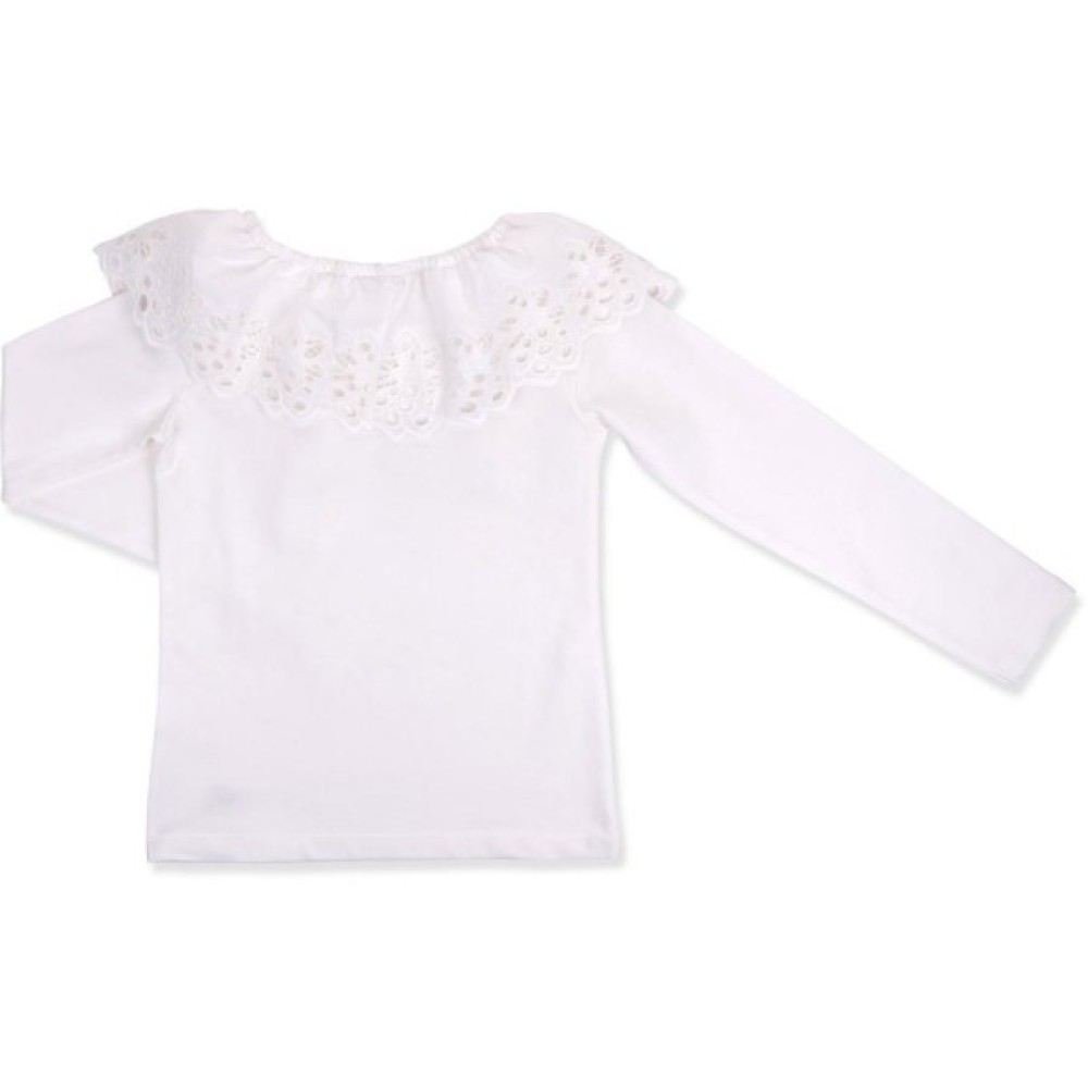 Ніжний лонгслів для дівчинки з вишитою оборкою.