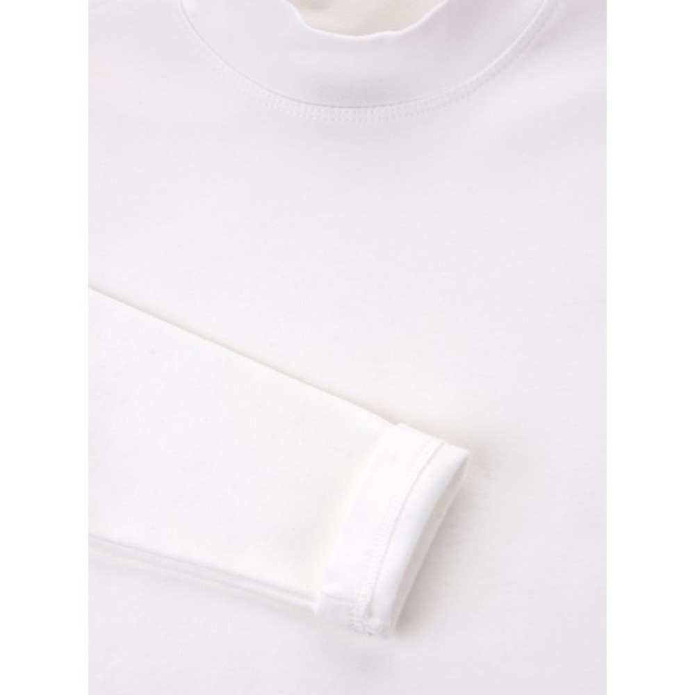 • Затишна, однотонна трикотажна модель молочно-білого кольору, з невисоким коміром-стійкою та довгими вшивними рукавами для дівчинки / хлопчика.