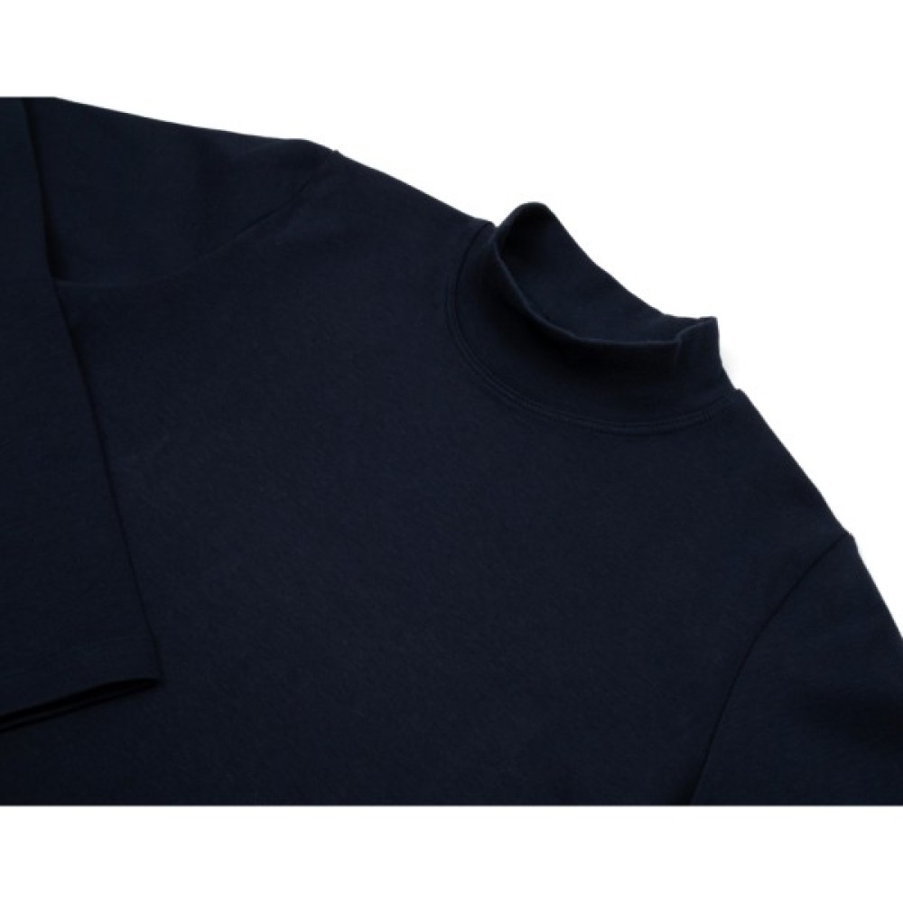 Чудовий гольф темно - синього кольору з турецького, середньої густини, бавовняного (100% бавовна) трикотажу. Дуже м'який, гладкий і приємний на дотик (з внутрішньої сторони - невелике начісування), з довгим рукавом і круглою, еластичною горловиною з невисоким коміром (висота ворота 5 см) під шию з подвійної трикотажної гумки.