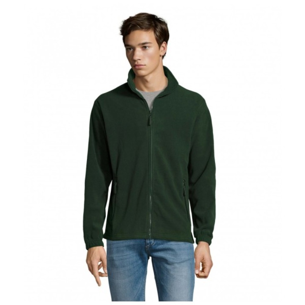 Чоловіча флісова куртка NORTH з коміром-стійка. Зміцнююча твіллова тасьма по коміру. Дві кишені на блискавці з клапаном і знімачем з еластичного джерсі, еластичні манжети. Низ виробу оброблений кулискою зі стопером. Втачні рукава. Виріб пройшов обробку проти катишків (Anti-pilling).
