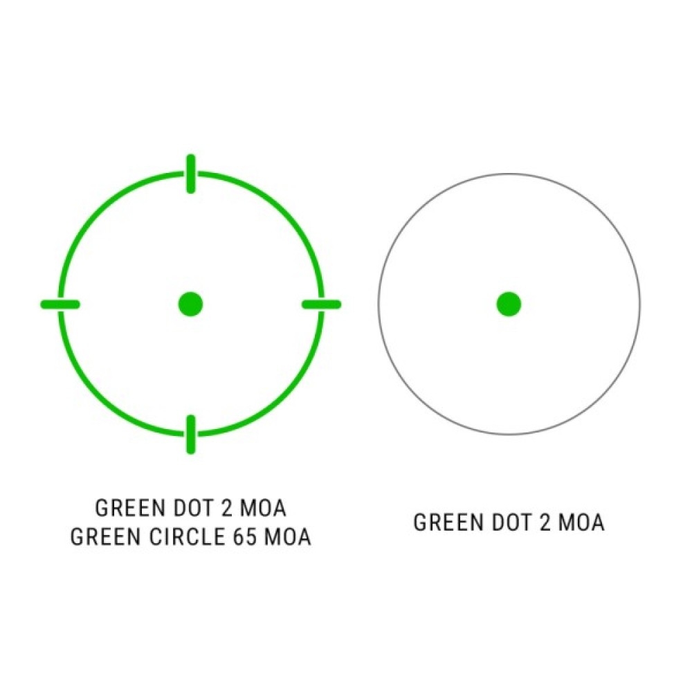 - Прицільна сітка: точка 2 МОА; точка 2 МОА в колі 65 МОА
