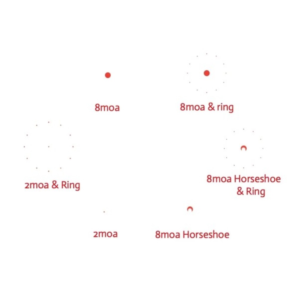 • Тип прицільної сітки: Multi Reticle (точка 2 MOA, точка 2 MOA + кільце 65 MOA, точка 8 MOA, точка 8 MOA + кільце 65 MOA, підкова 8 MOA та підкова 8 MOA + кільце 65 MOA)