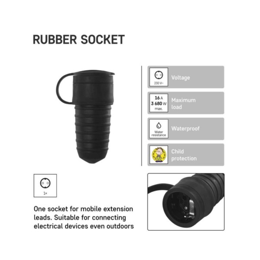 Гумова переносна розетка P0049 з уземленням від чеського виробника EMOS.