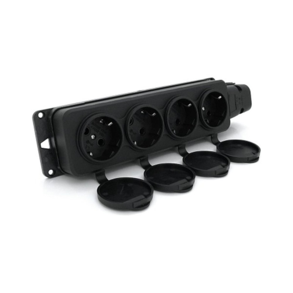 Колодка PiPo PP/SP-4/44/16B - це електрична колодка з чотирма гніздами, виготовлена з каучуку чорного кольору. Вона має захист від вологи та пилу (IP44), а також заглушку та заземлення.