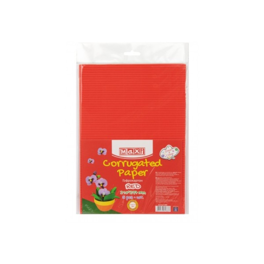 Кольоровий, картон, Maxi, A4, Гофрокартон, 21х297, см, червоний, MX61888
