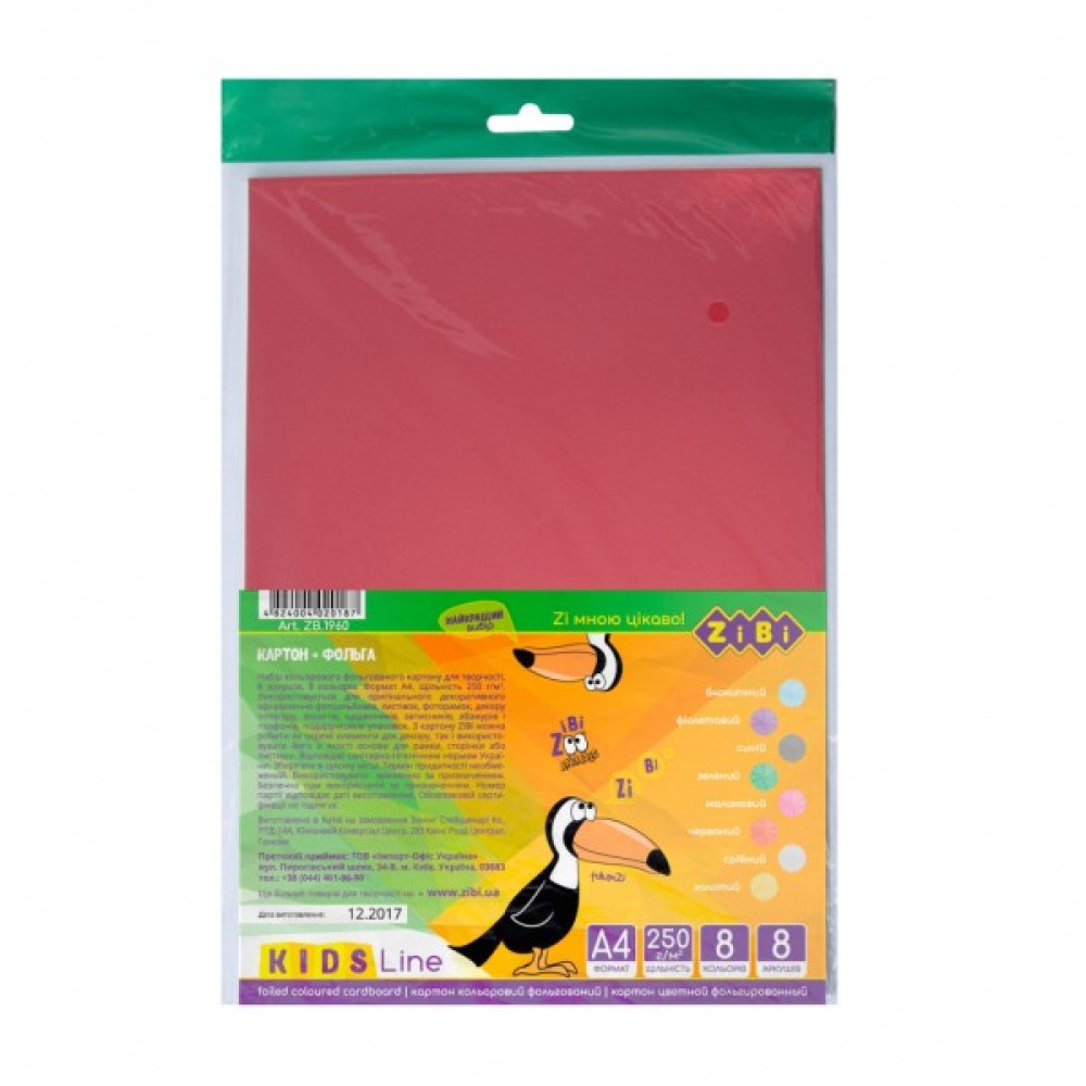 Кольоровий, картон, ZiBi, А4, фольгований, 8, листів8, кольорів, ZB1960