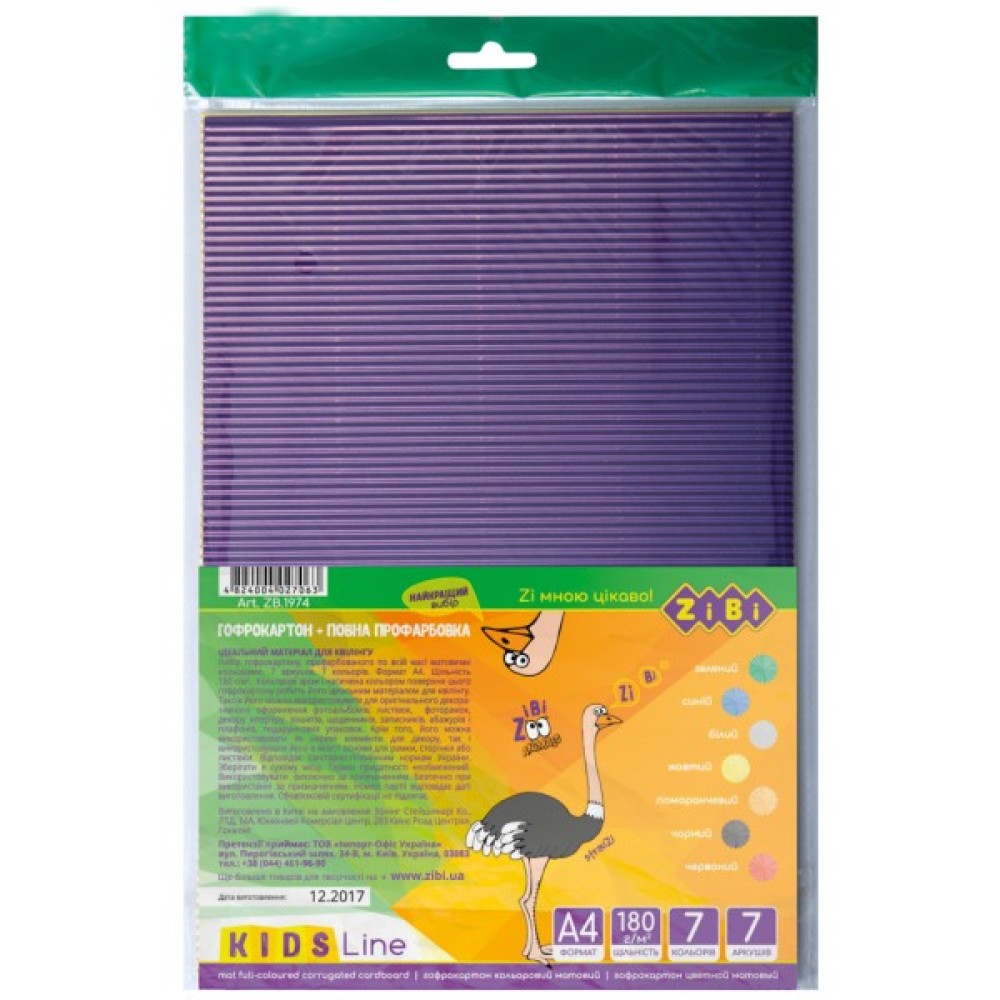Набір кольорового гофрокартону (кольоровий в розрізі). В наборі 7 кольорів картону з матовим покриттям (зелений, синій, білий, помаранчевий, жовтий, чорний, червоний). Щільність 180г/м2, профарбований.