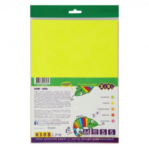 Кольоровий, папір, ZiBi, А4, 5, листів5, неонових, кольорів, ZB1910