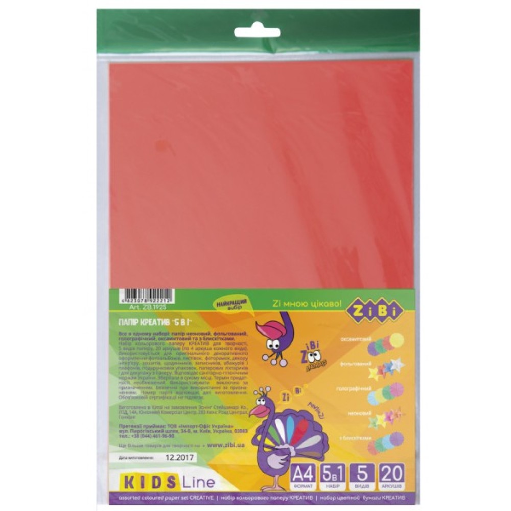 Кольоровий папір ZiBi А4, Креатив 20 листів (ZB.1925)