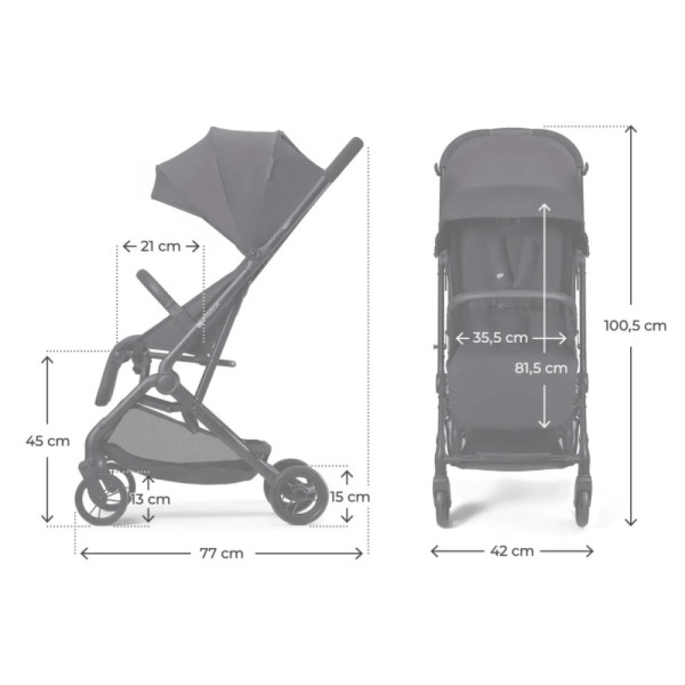 Просторе сидіння довжиною 84 см забезпечує комфорт від народження до 15 кг. Регульована спинка та підніжка дозволяють створити повністю горизонтальне положення — ідеально для новонароджених.
