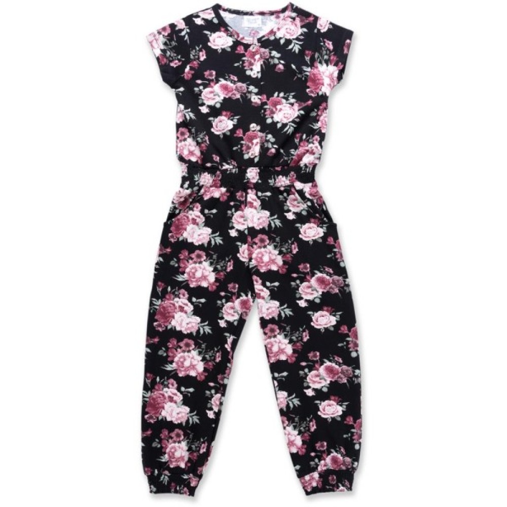 Класний комбінезон з короткими рукавами зшитий з якісного турецького трикотажу на бавовняній основі. Виріз горловини класичний, круглий, окантований трикотажною бейкою. Спереду до талії лінія фірмових перламутрових ґудзиків. З боків, на стегнах, прорізні кишені, достатньої глибини. Еластичний пояс і еластичні манжети по краях штанин, забезпечать максимальну зручність і оптимальну посадку по фігурі.