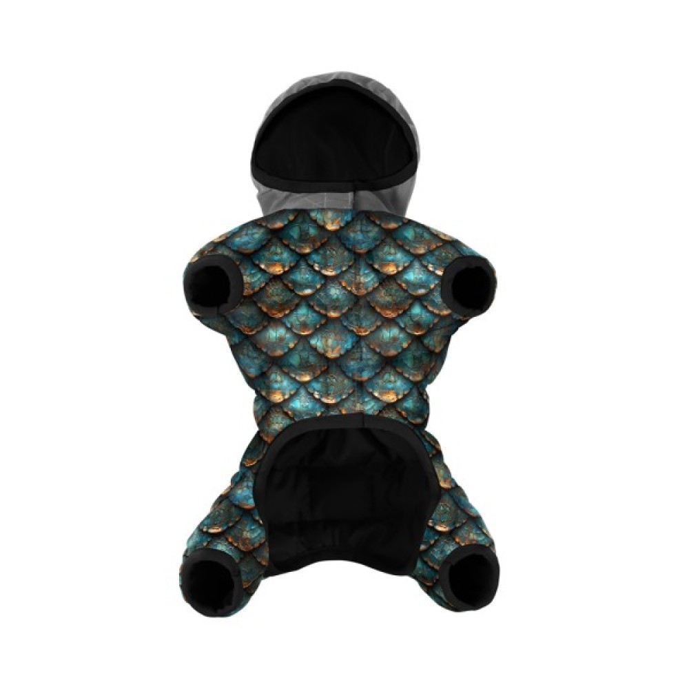 Модель створена для зими та міжсезоння: чудово захищає від вітру, холоду й бруду. Світловідбивний капюшон підвищує помітність собаки у темний час доби, а зручна застібка-липучка не чіпляє шерсть і дозволяє легко одягати комбінезон. Продуманий крій гарантує комфорт і свободу рухів.