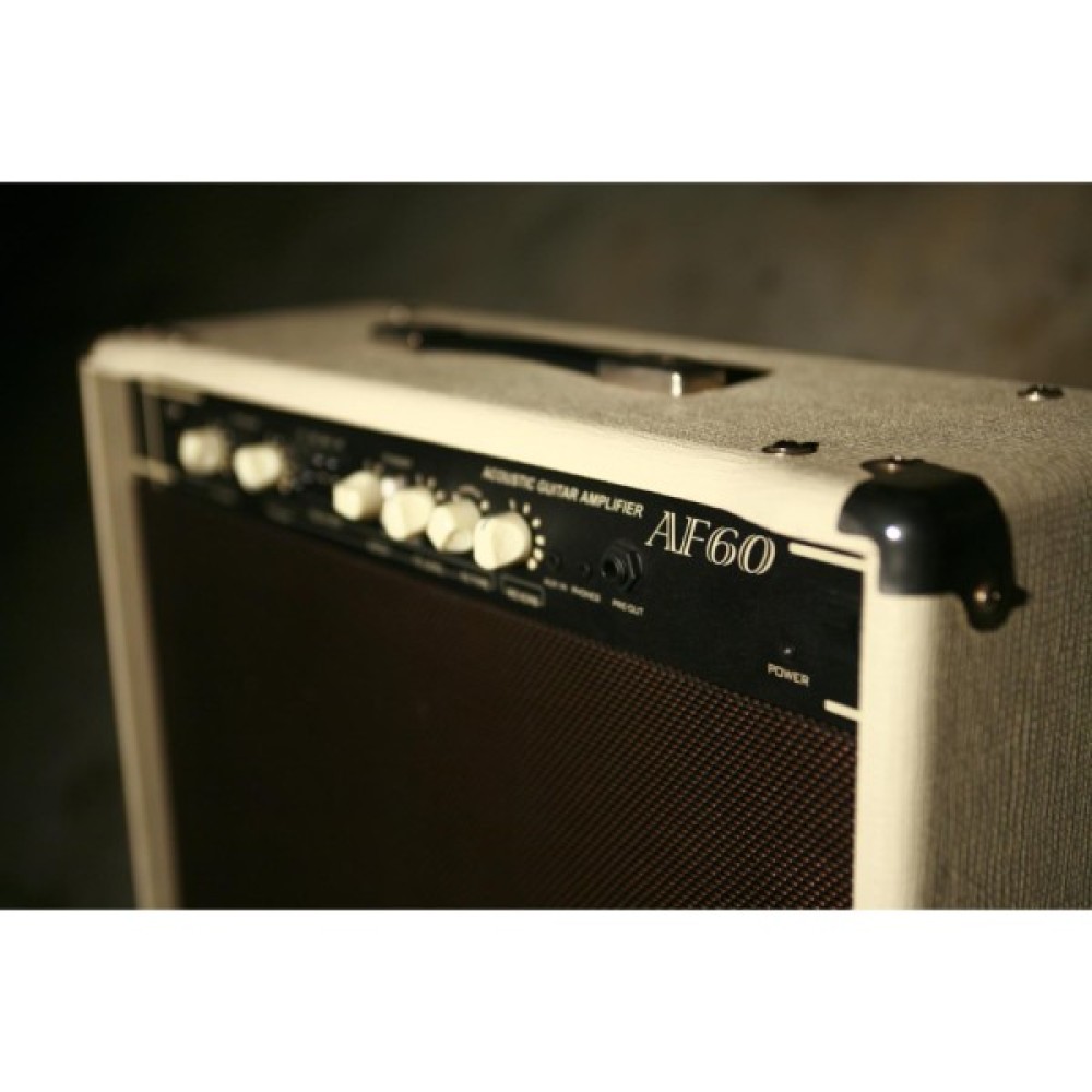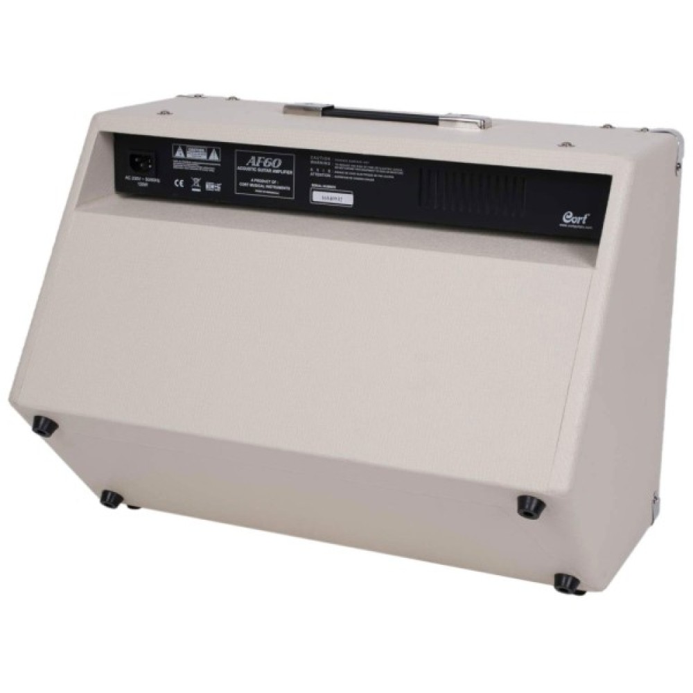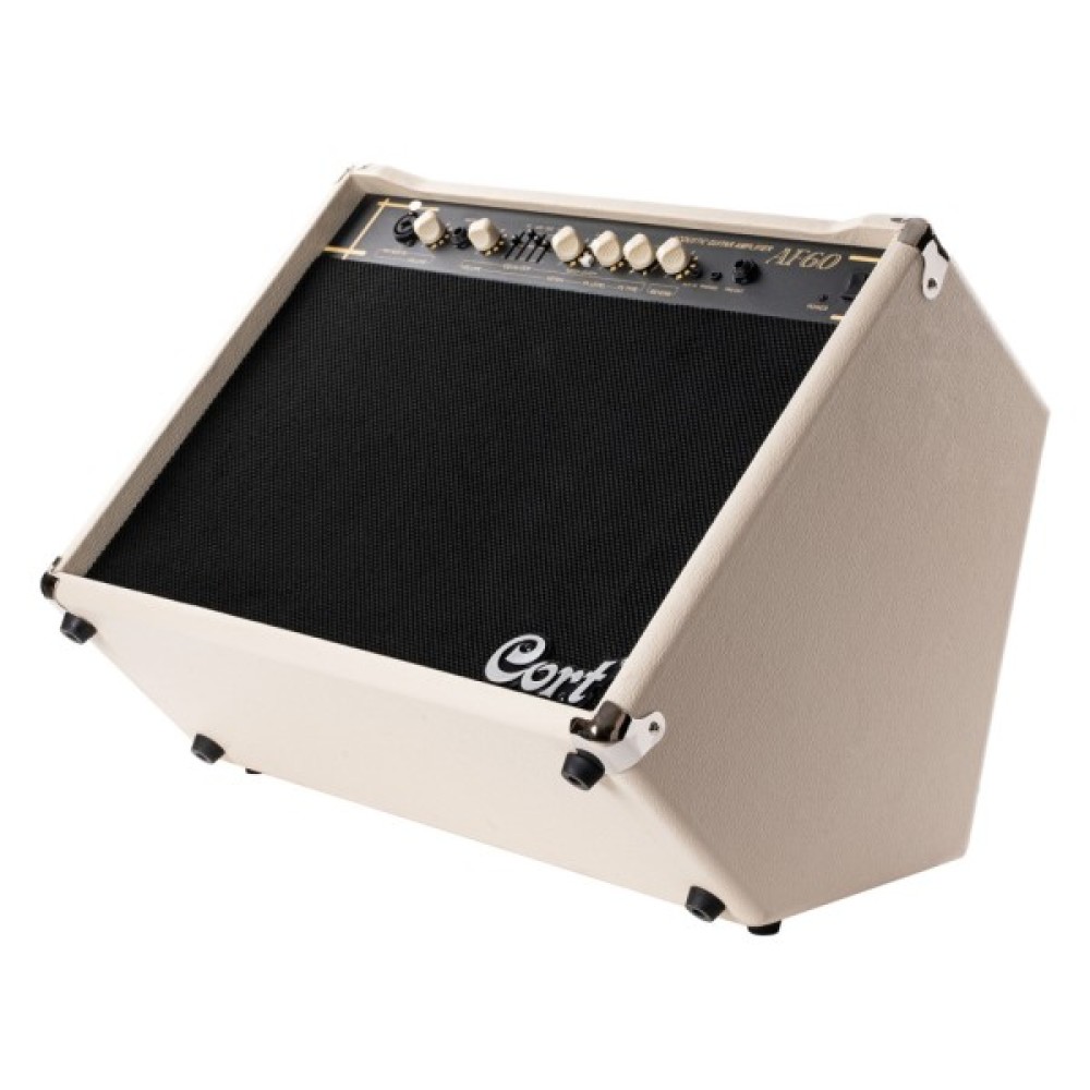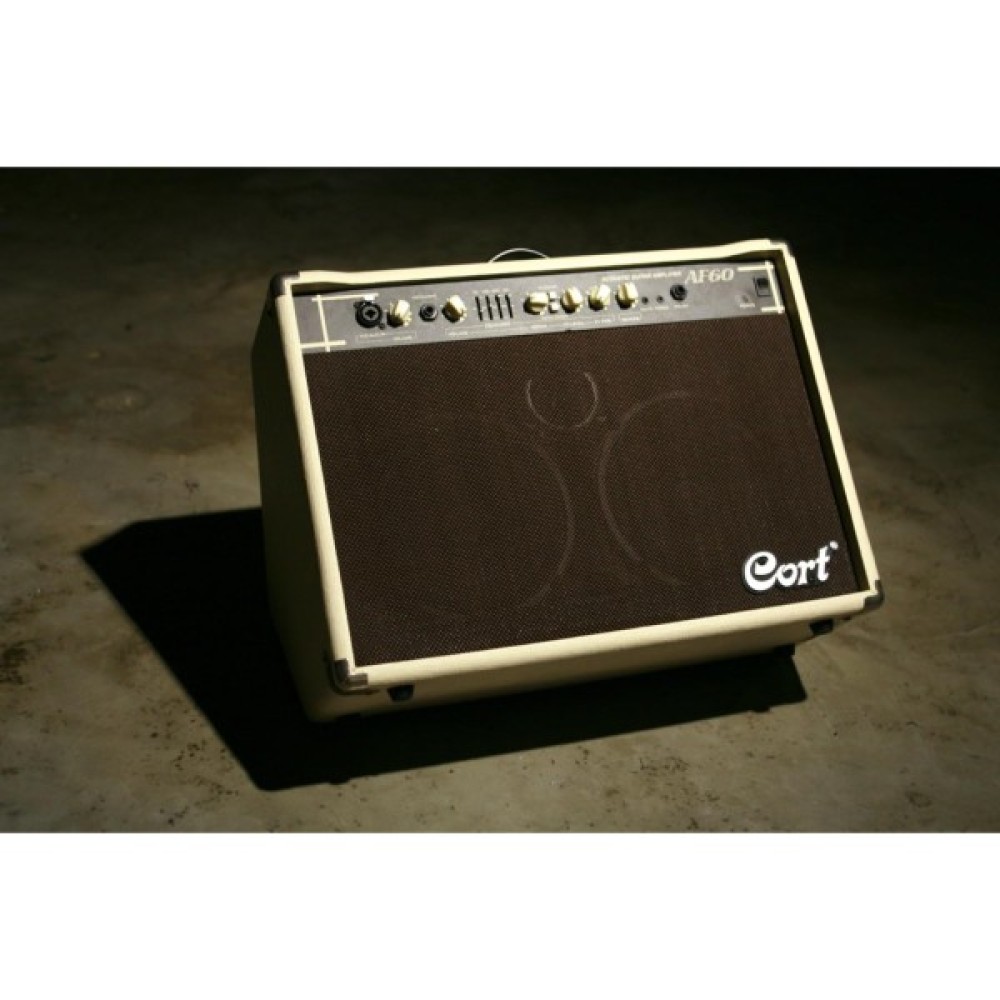 Cort AF60 здатний видати до 60 Вт вихідної потужності та має вбудовану DSP обробку. Крім цього підсилювачі серії AF отримали 4-смуговий графічний еквалайзер для точного формування звучання і обладнані режекторним Notch-фільтром для усунення акустичного зворотного зв'язку (feedback). Завдяки двом потужним 8" динамікам AF60 стане ідеальним вибором для виступів в клубах і на невеликих сценах.