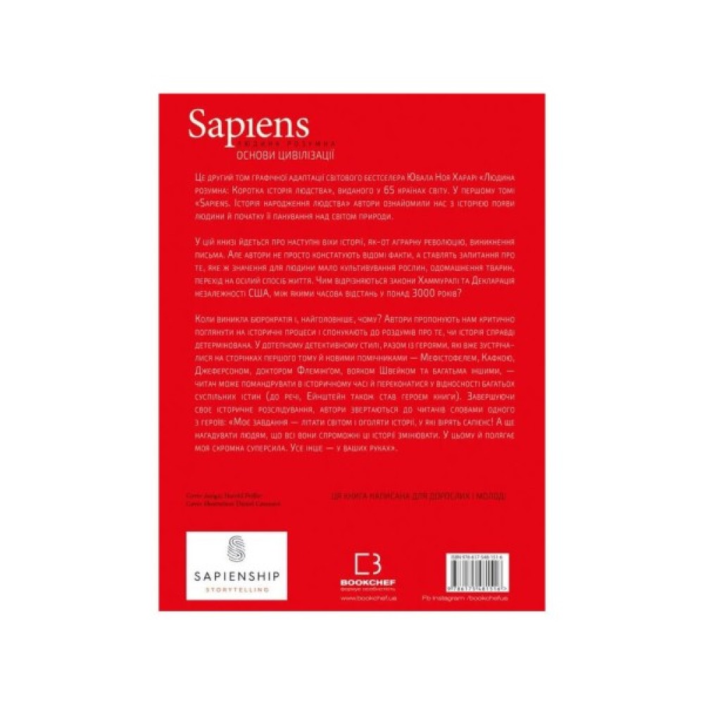 Це другий том графічної адаптації світового бестселера Ювала Ноя Харарі «Людина розумна: Коротка історія людства», виданого у 60 країнах світу. У першому томі «Sapiens. Історія народження людства» автори ознайомили нас з історією появи людини й початку її панування над світом природи.