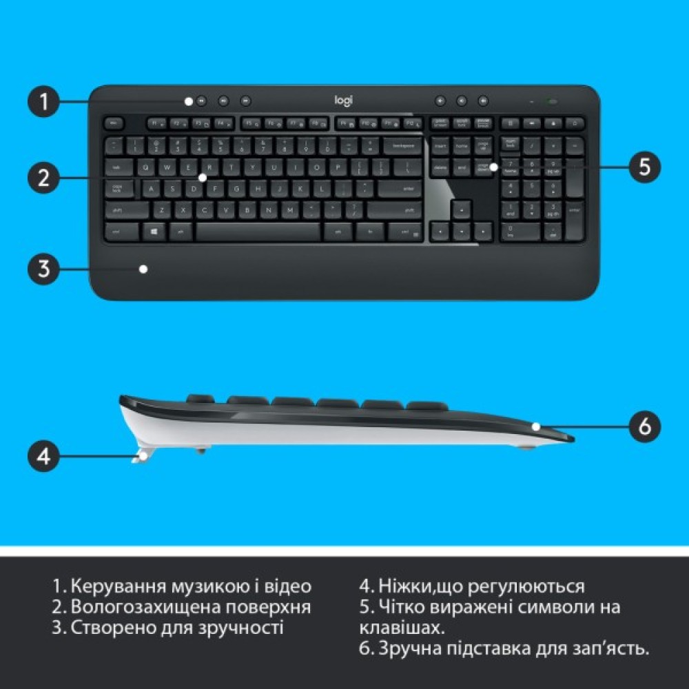 Клавіатура та миша легко під'єднуються за допомогою одного мініатюрного USB-приймача Logitech Unifying. Вам надається надійне зашифроване з'єднання в діапазоні до 10 метрів майже без затримок і збоїв