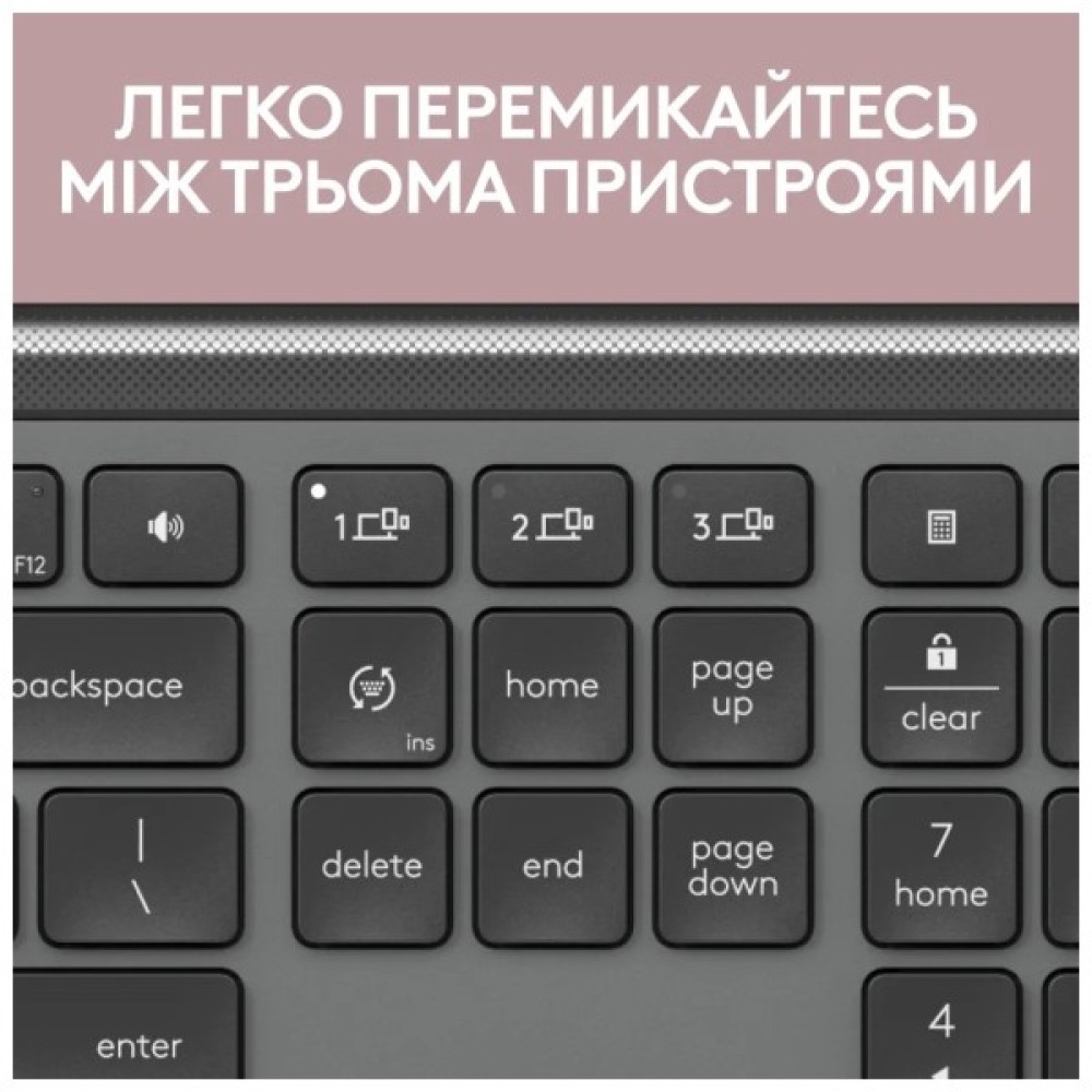 Комплект використовує надійне бездротове з'єднання з комп'ютером, що дає змогу уникнути дротів, спрощуючи робочий простір і забезпечуючи свободу руху. Типи підключення: приймач USB Logi Bolt, Bluetooth Low Energy (Bluetooth 5.1).