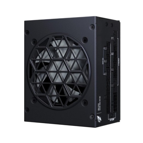 Цей блок живлення SFX стандарту оснащений активним модулем PFC, що підвищує фактор потужності, забезпечуючи більш ефективне використання електроенергії. Він підтримує підключення материнської плати через роз'єм 24+8 pin та процесора з допомогою 2x4+4 pin, а також передбачено чотири додаткових роз'єма для живлення відеокарт. Вісім роз'ємів SATA, чотири Peripheral та чотири FDD забезпечують універсальність у підключенні різноманітних компонентів і периферії.